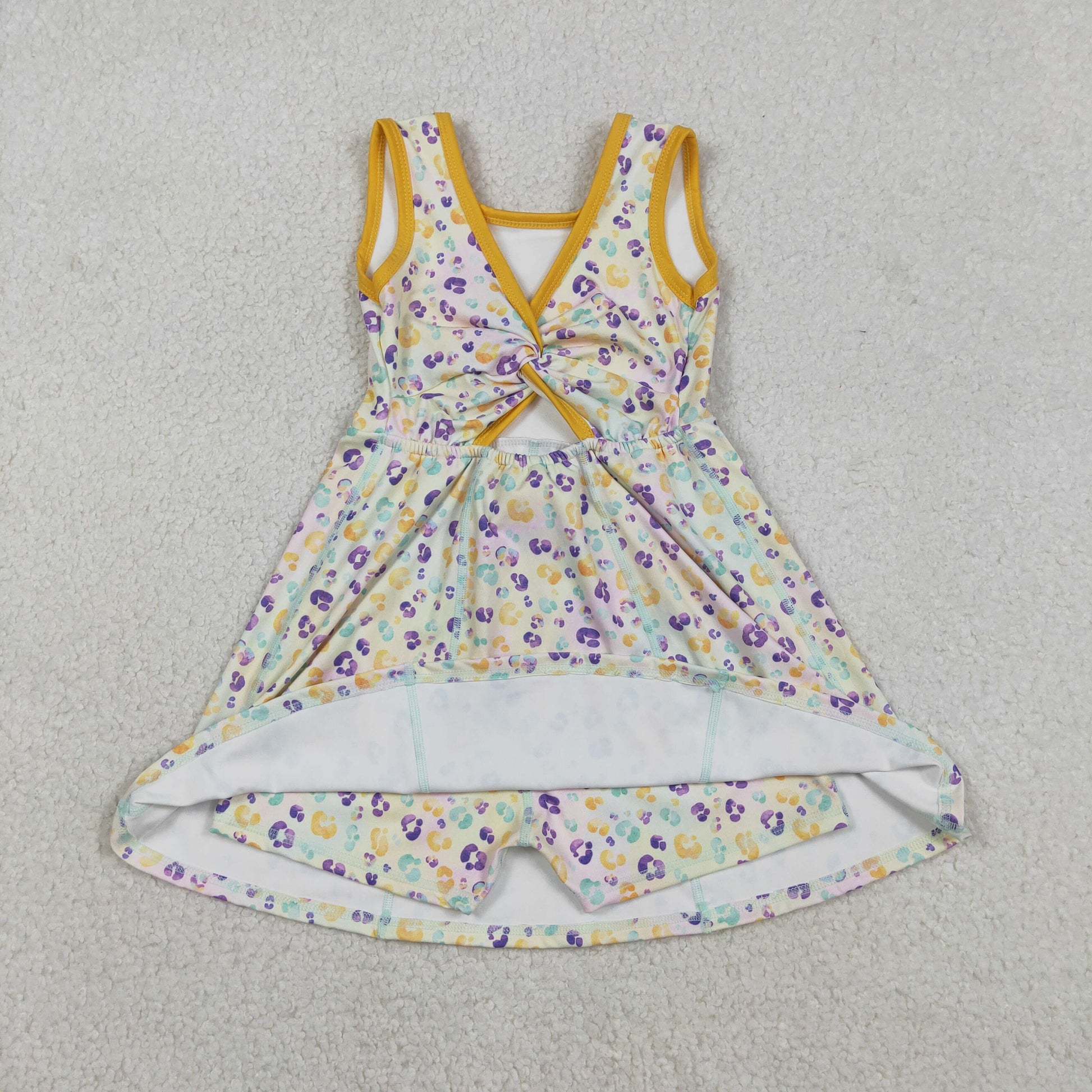 GSD2870 Baby Girls Sleeveless Mardigras Leopard Shorts Yoga Active Knee Length Dress C12.11