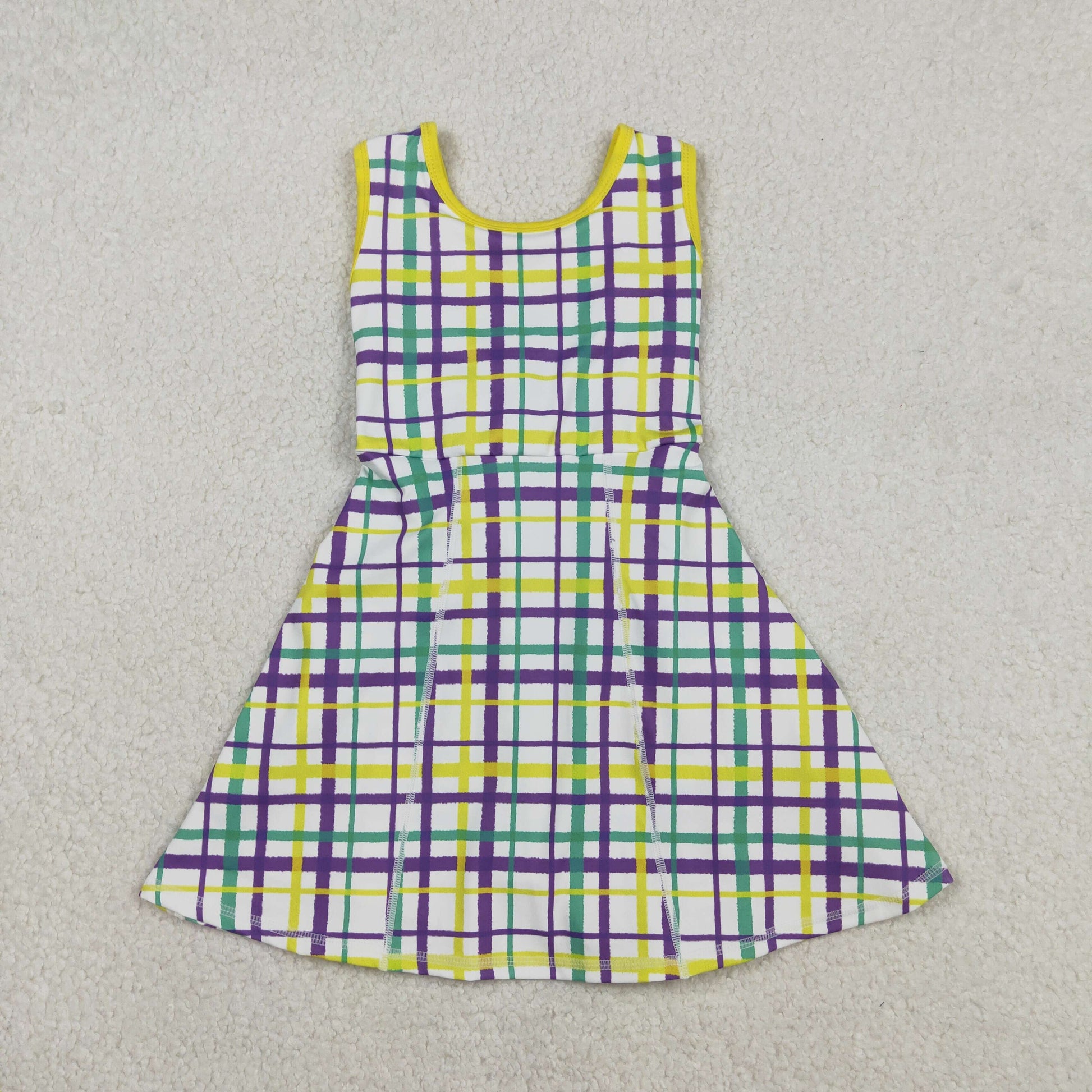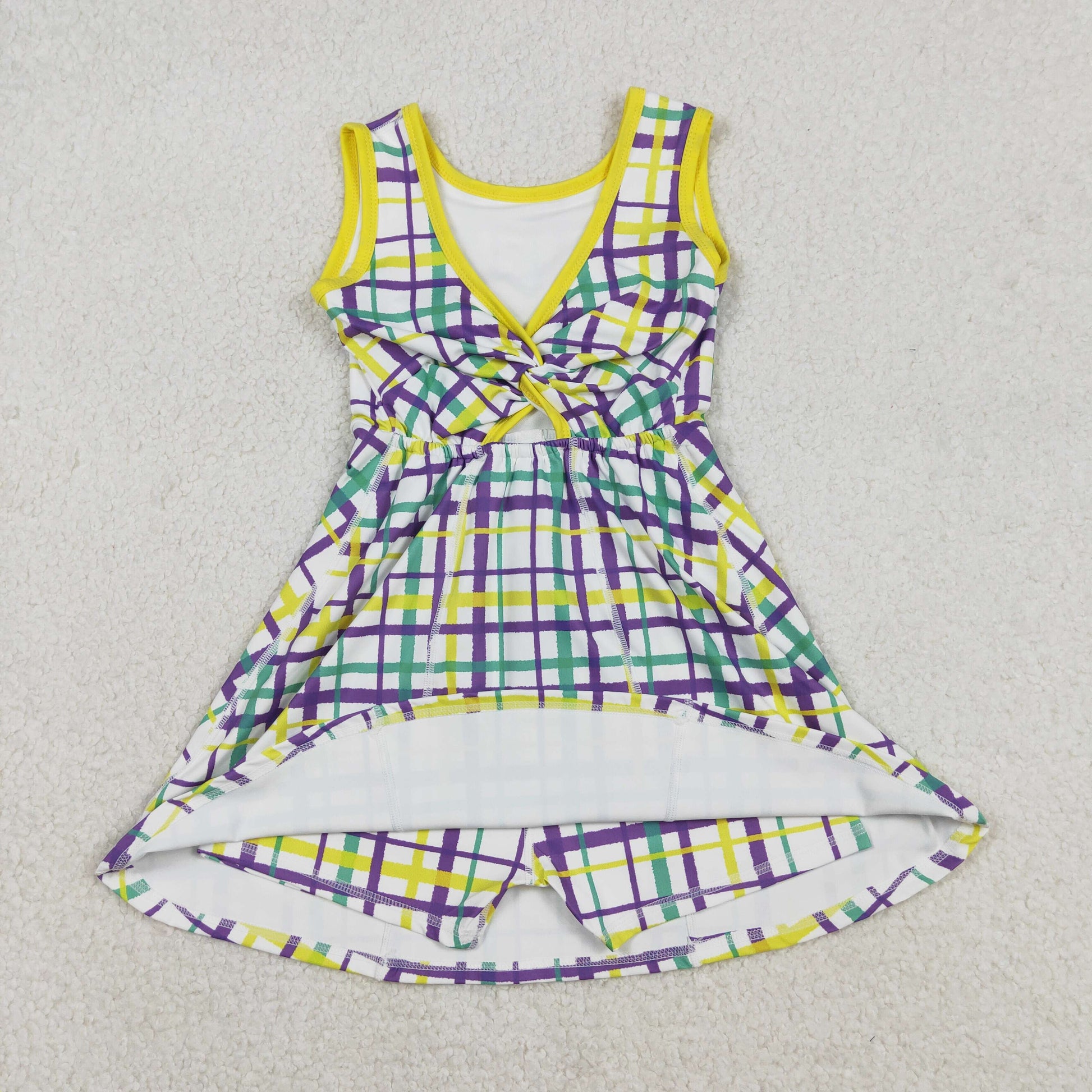 GSD2945 Baby Girls Mardigras Checked Yoga Active Shorts Knee Length Dress C12.10