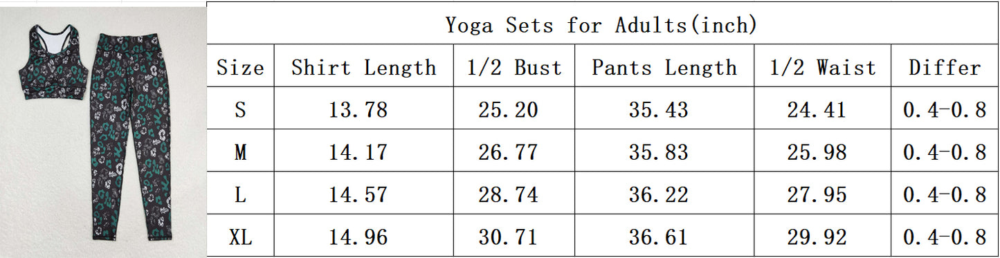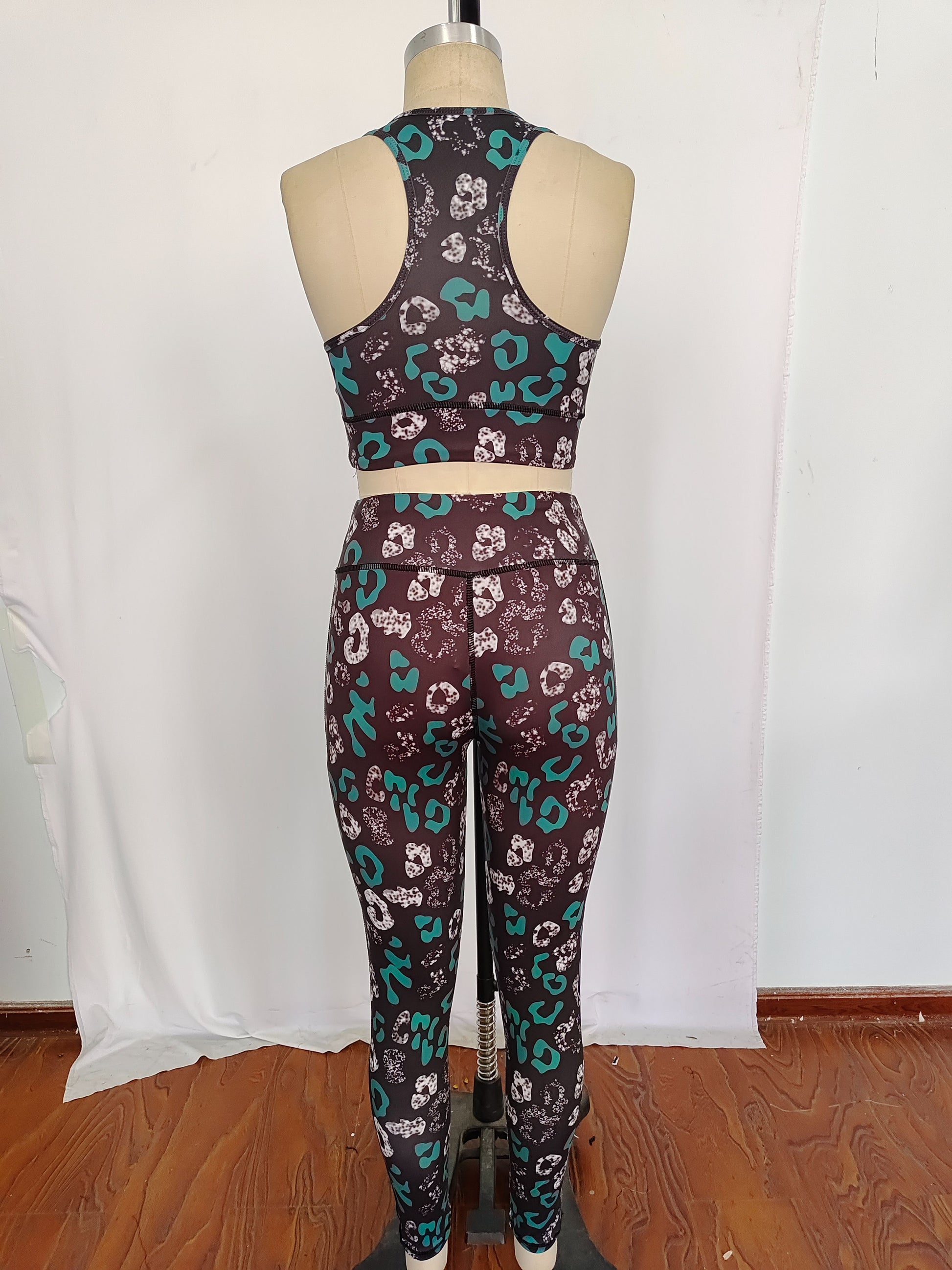 GSPO1462 Leopard print black sleeveless pants yoga suit for adult women