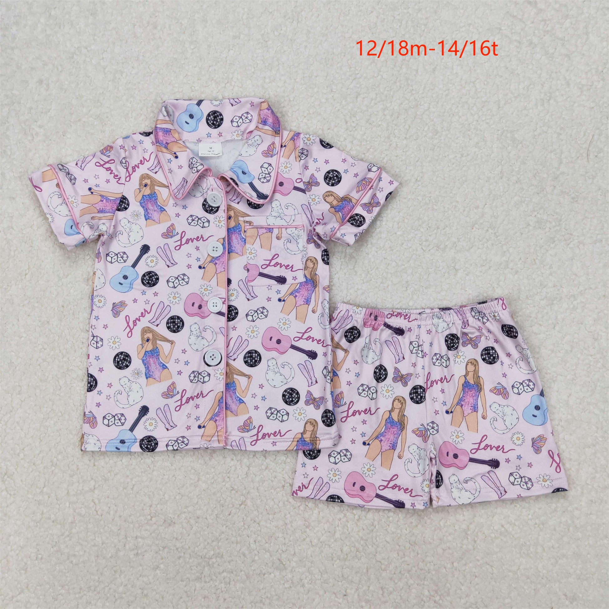 GSSO1773 Baby Girls Pink Singer Lover Buttons Shirts Shorts Pajamas Clothes Set