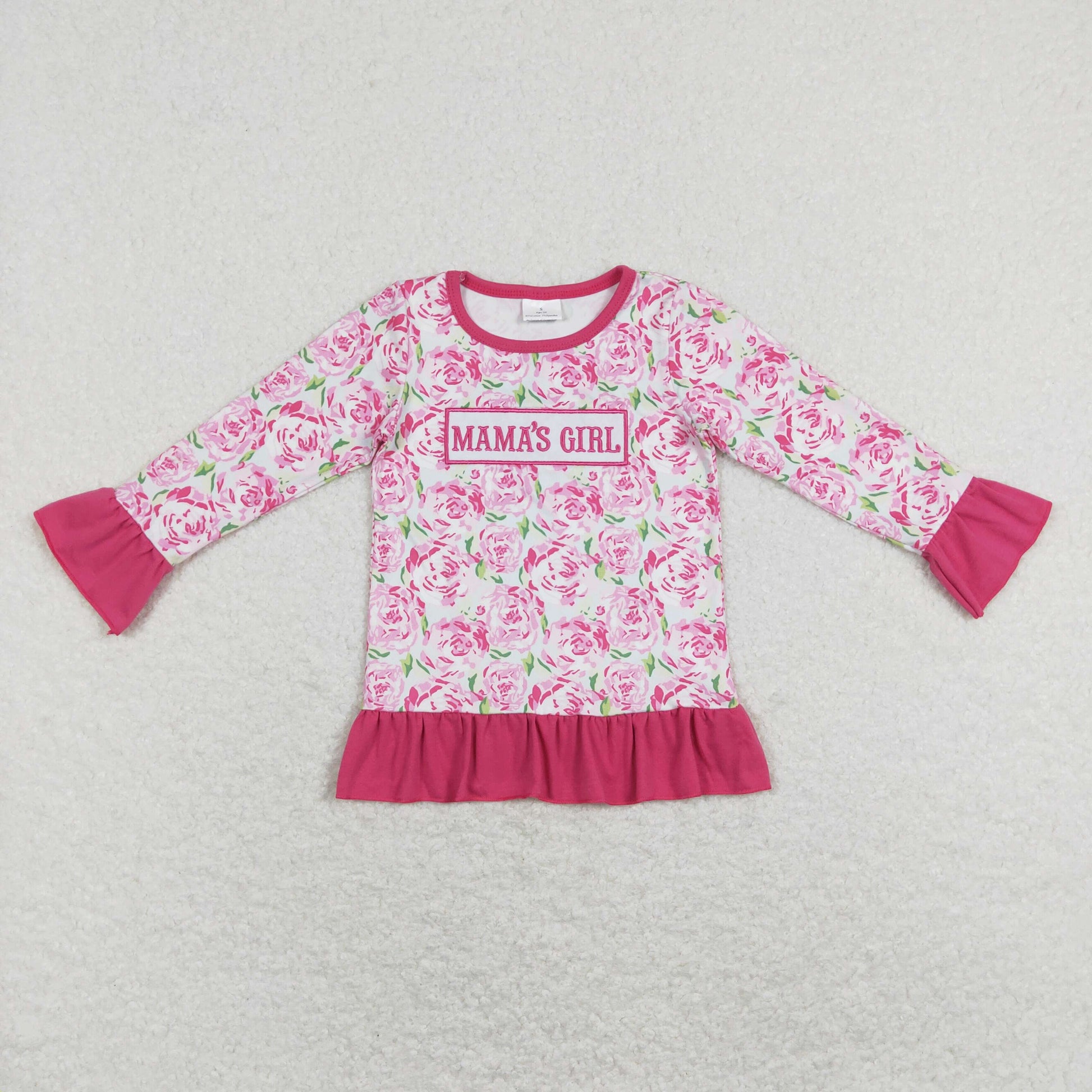 GT0403mama's girl embroidered letter flower rose red long-sleeved top Valentine's Day