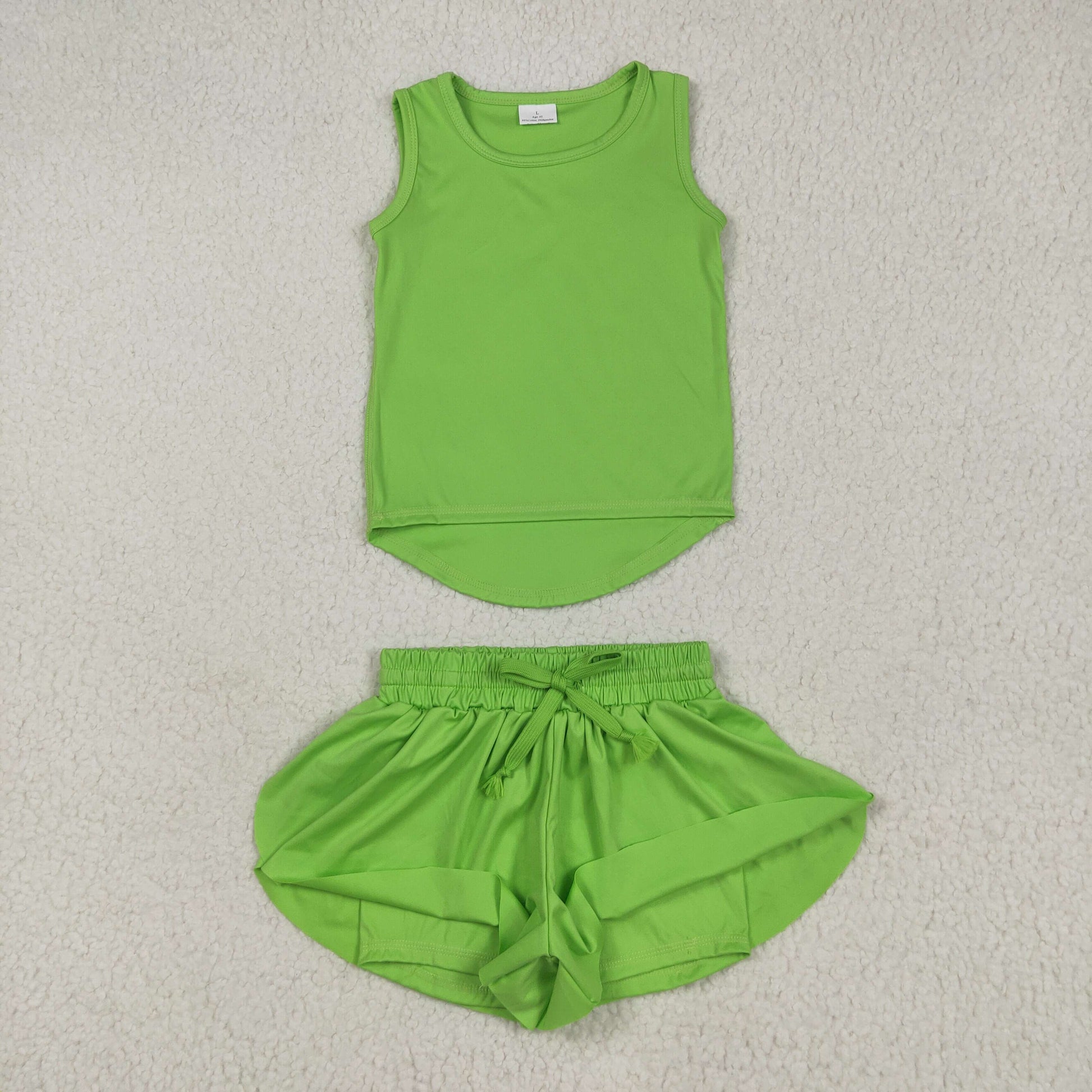 GT0985+SS0548 Baby Girls Green Sleeveless Top Skorts Set 5.29