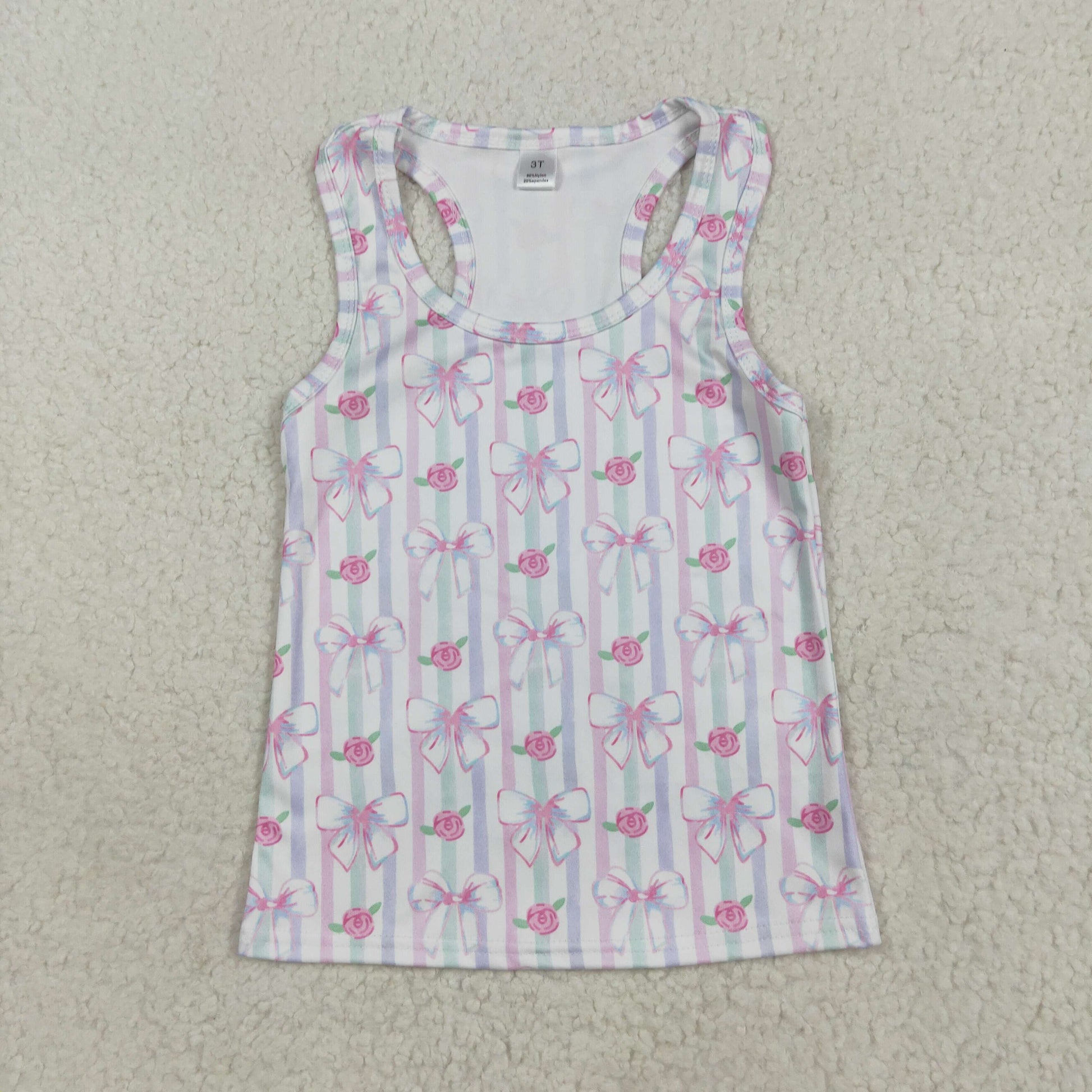 GT1014 Baby Girls Sleeveless Lavender Bows Flowers Stripe Yoga Shirts Top 7.17