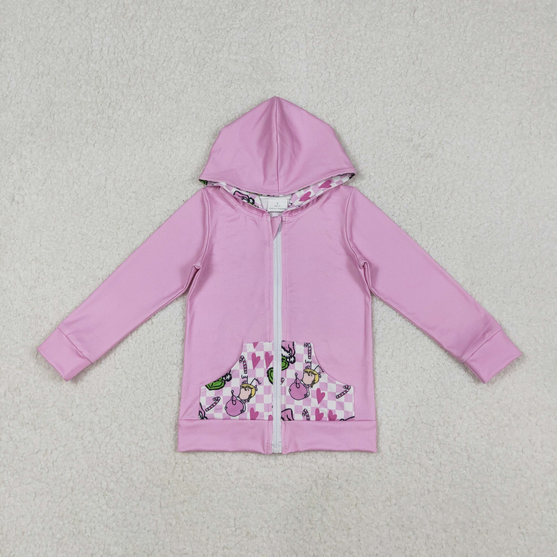 GT1142 Baby Girls Pink Christmas Green Faces Pocket Zipper Hoodies C10.31
