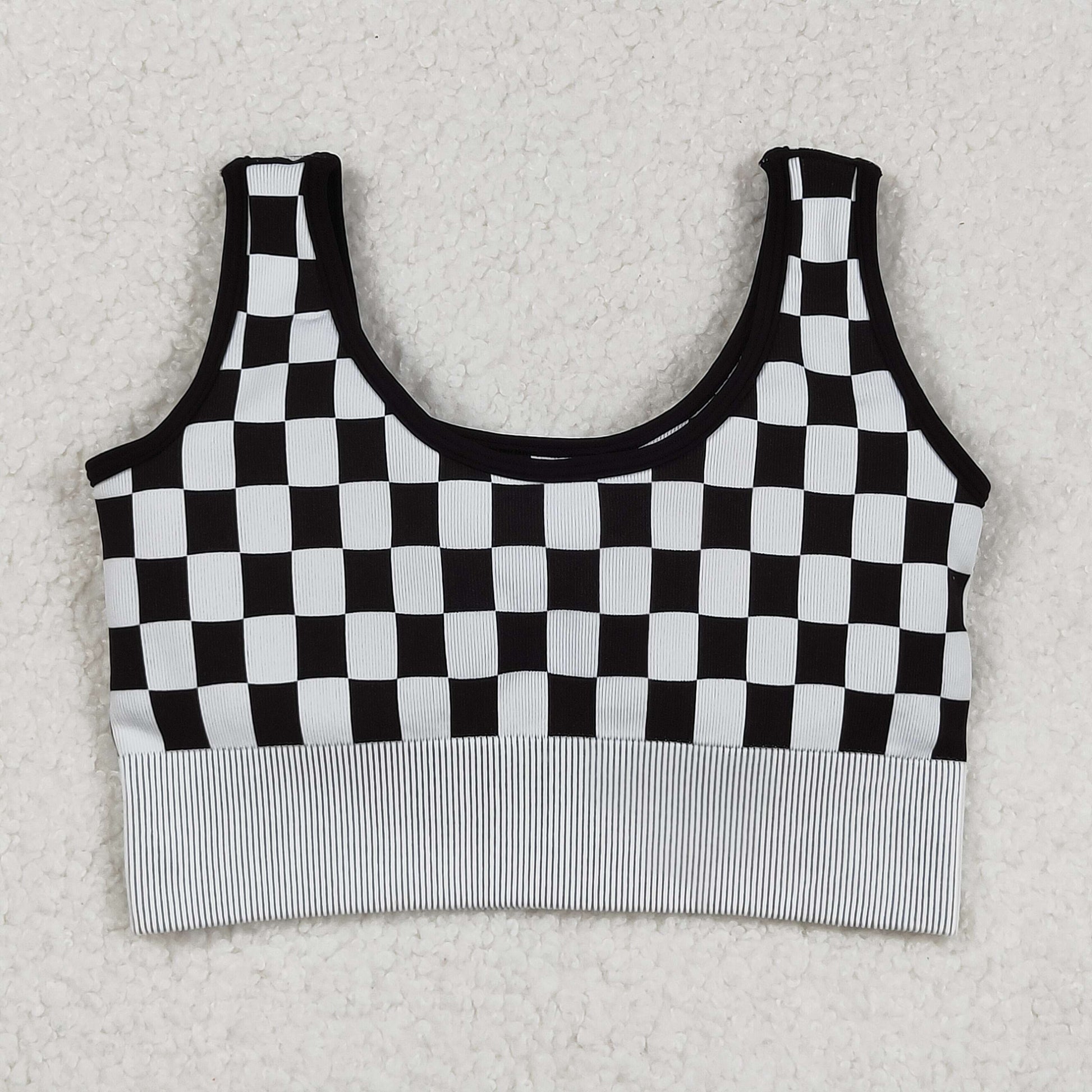 GT1189 Adult Women Black Checkered Knitted Yoga Crop Bra Tops C9.2
