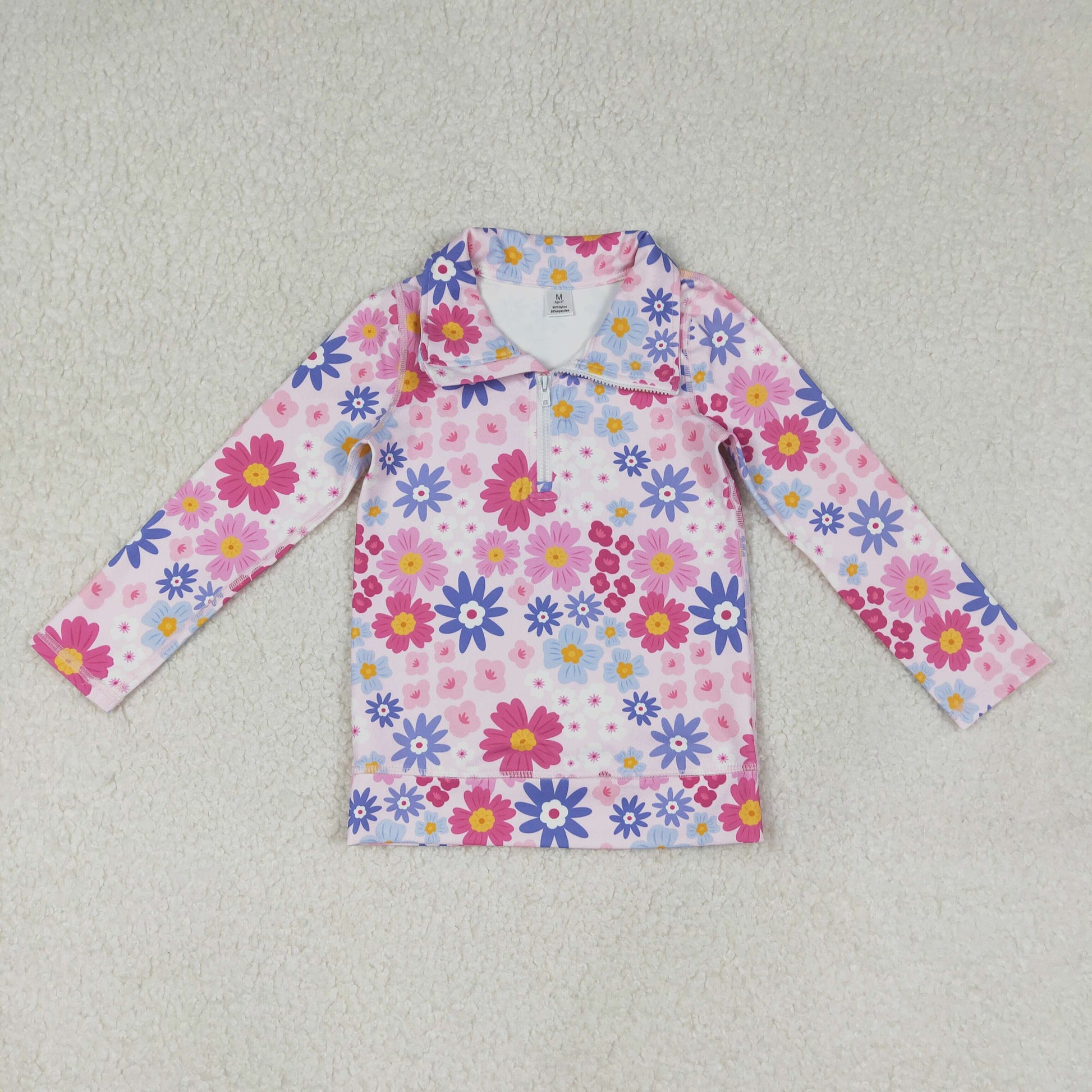 GT1373 Baby Girls Pink Blue Daisy Flowers Yoga Active Zipper Pullovers Top C12.9