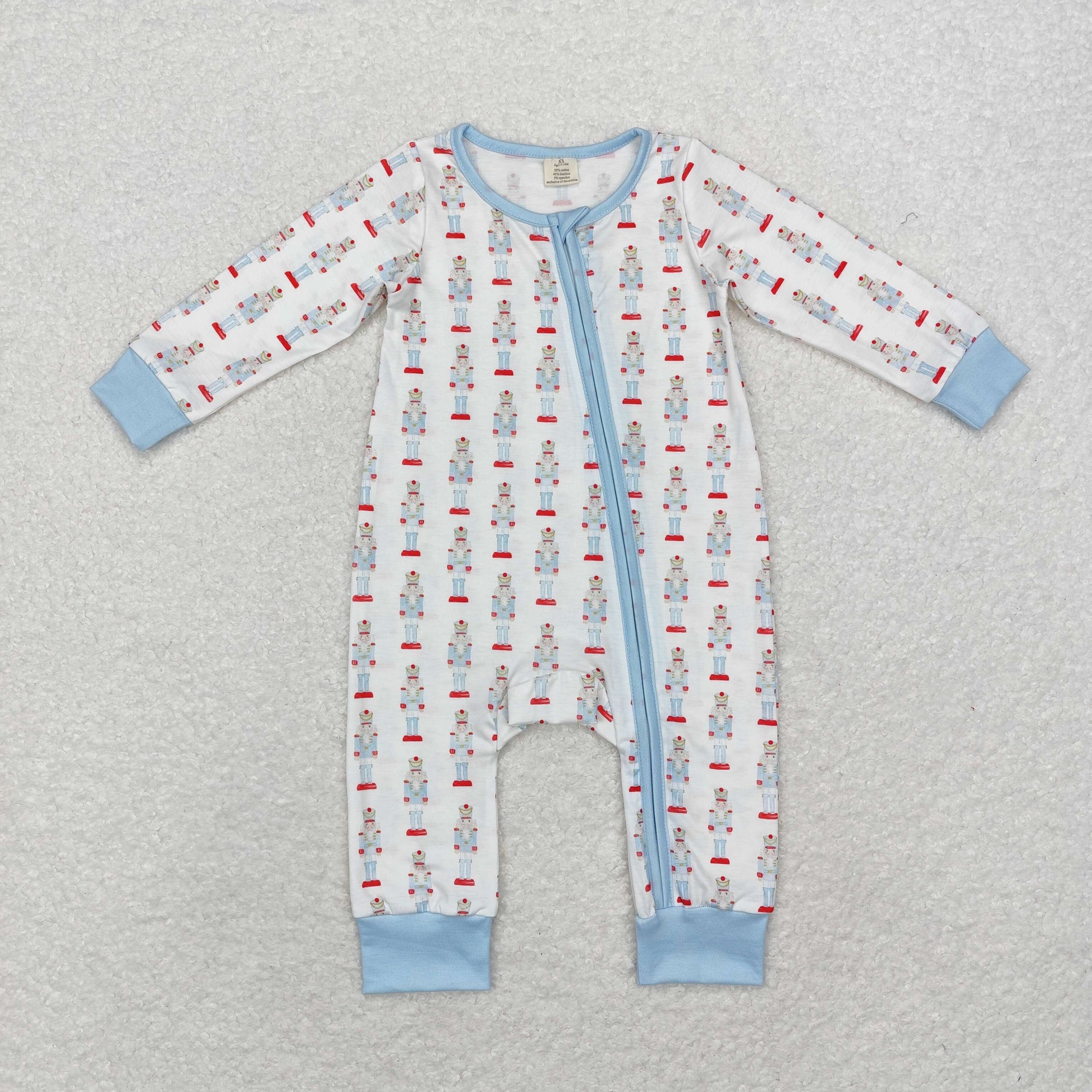 LR1184 Bamboo Christmas cartoon blue and white zip-up long-sleeved onesie
