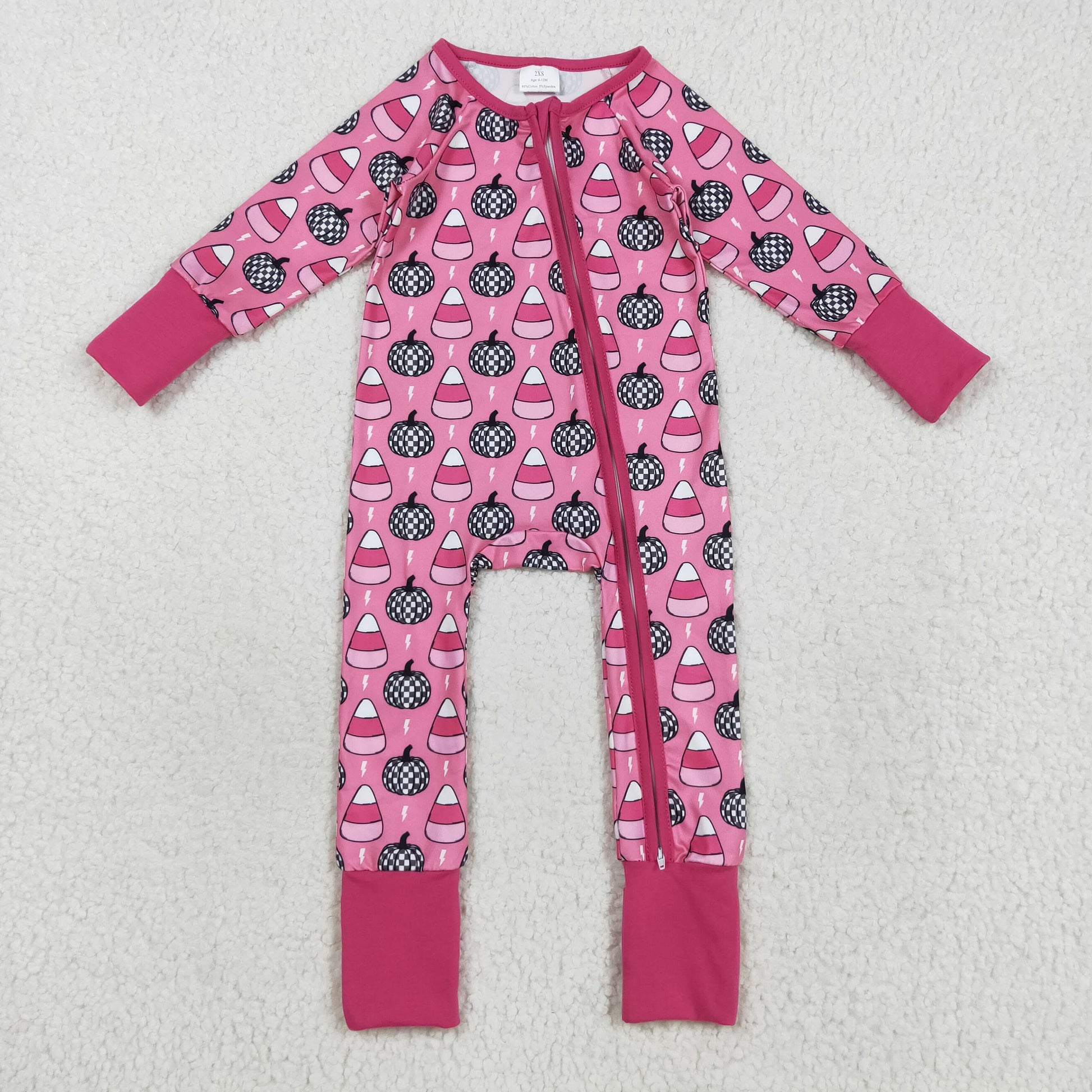 LR2467 Baby Girls Long Sleeves Plaid Pumpkins Candy Zipper Pant Romper C8.21