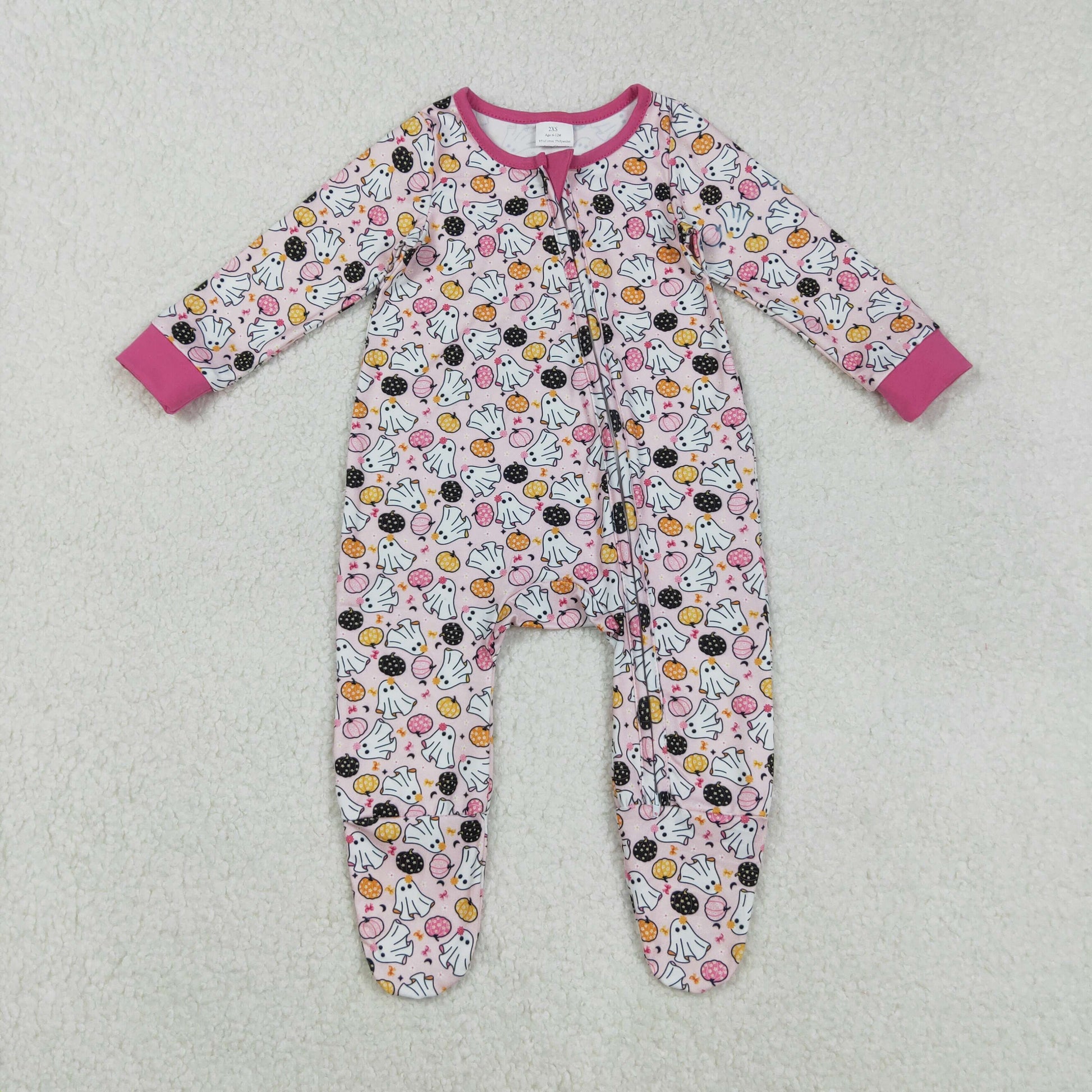 LR2506 Baby Girls Ghosts Pumpkins Halloween Zipper Footie Romper C8.29
