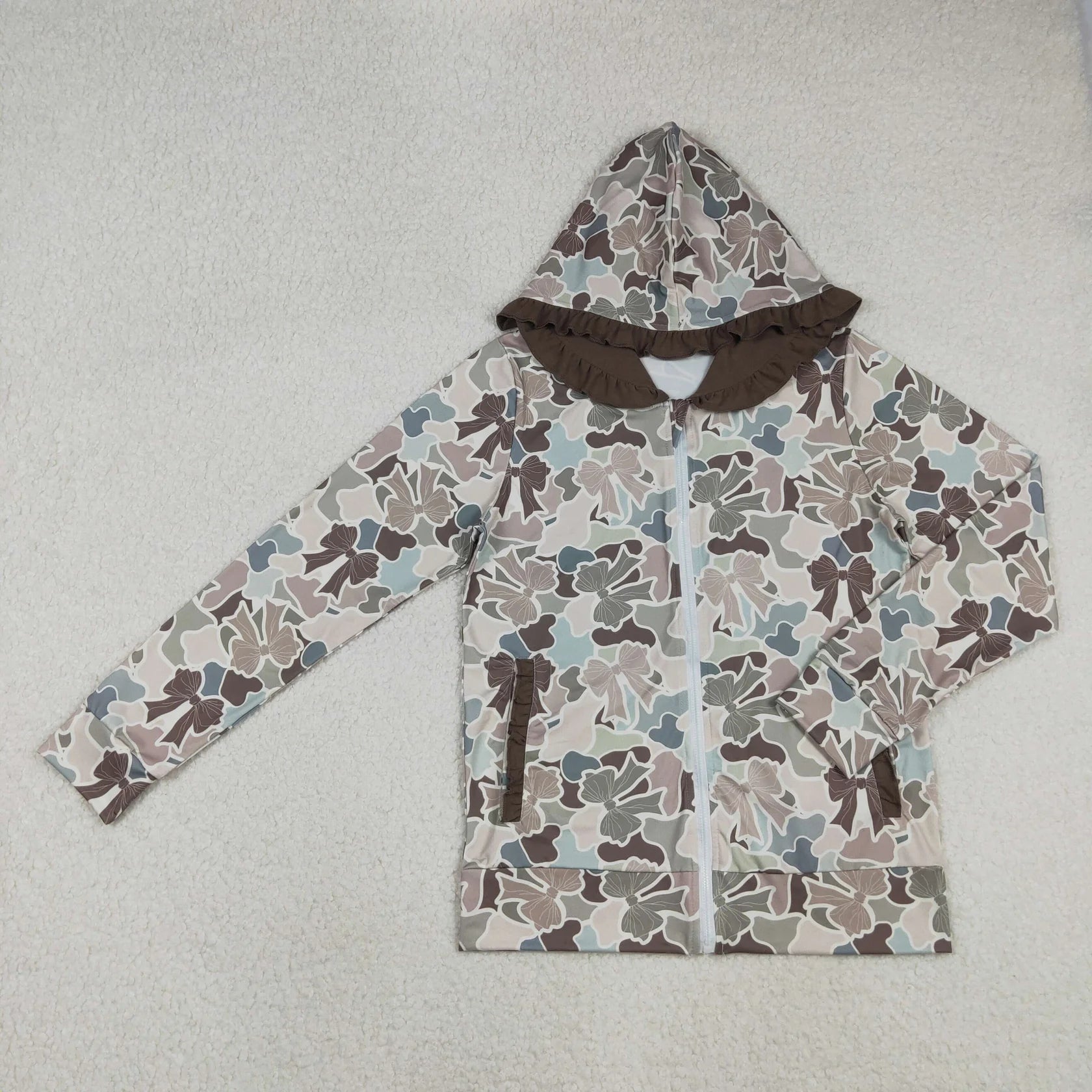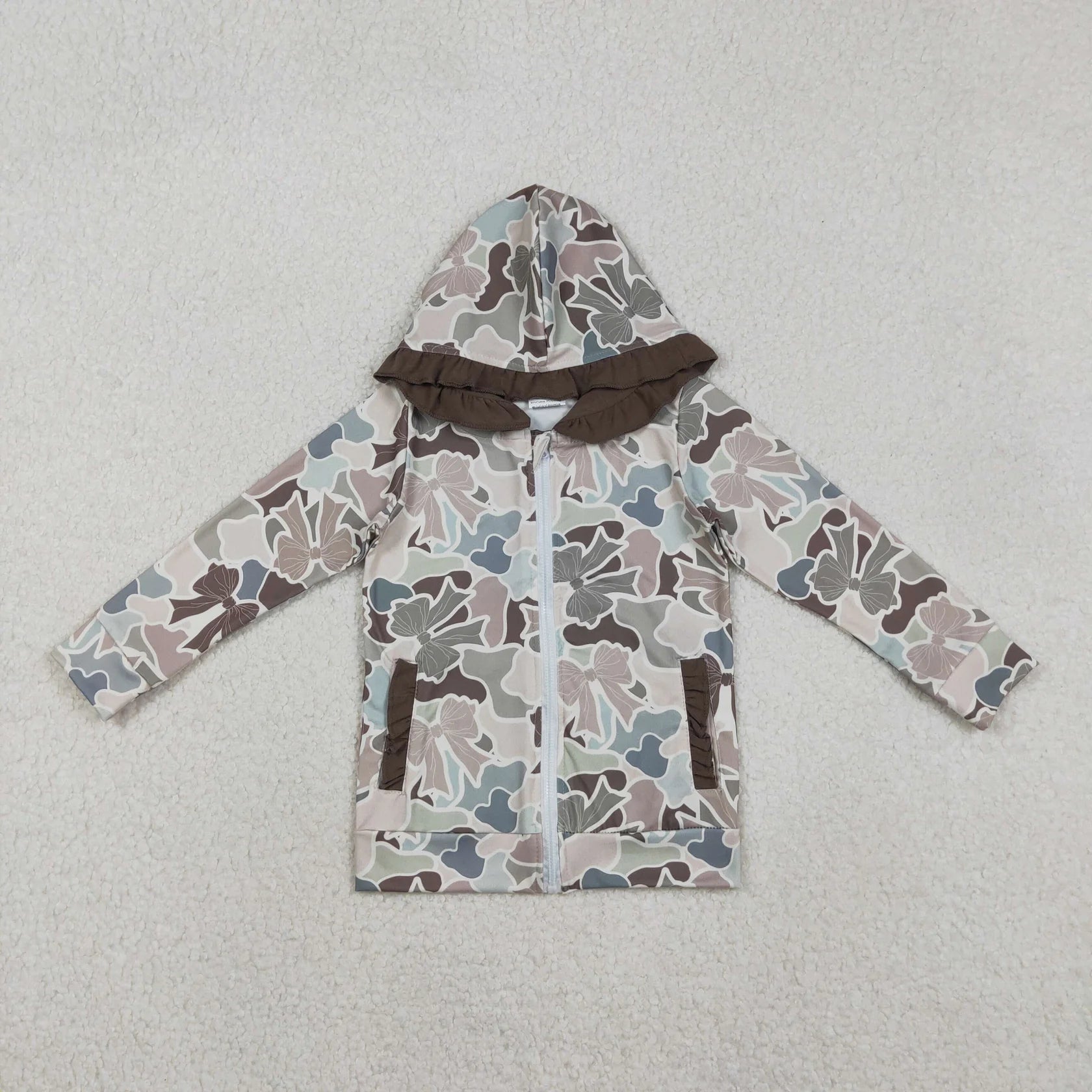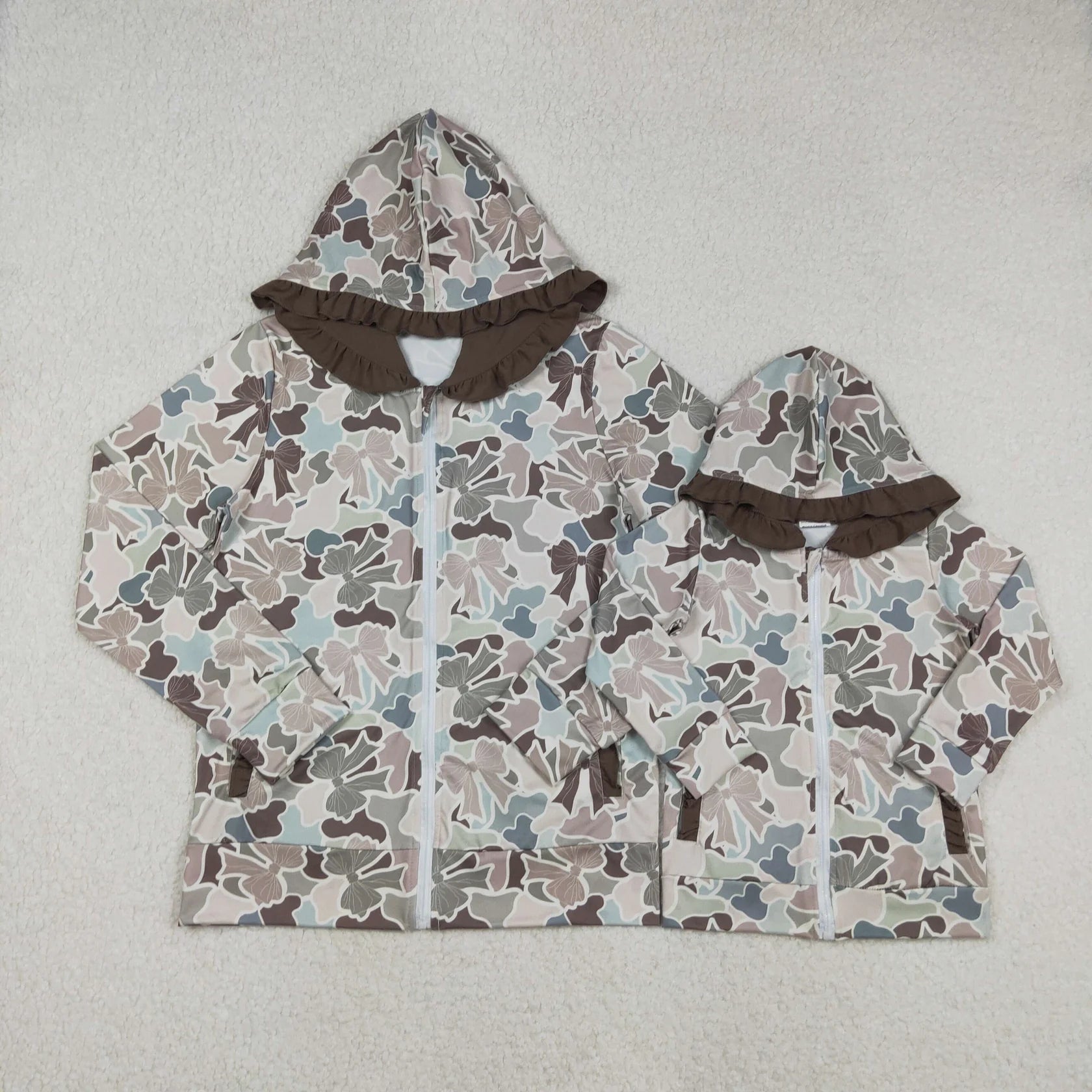 Mama and Me Southern Grey Bows Camo Pockets Zipper Ruffle Hoodie Jackets Top C12.2