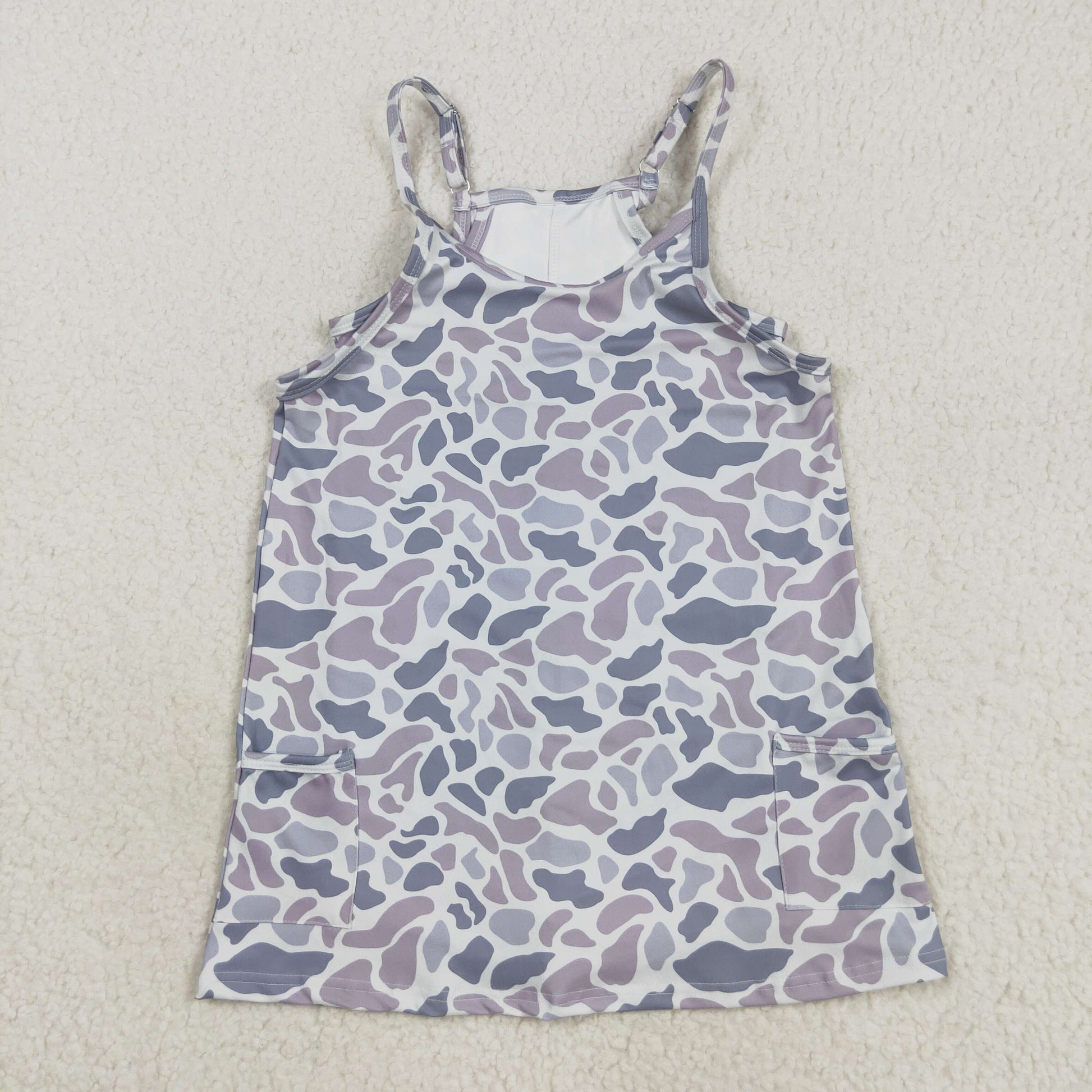 Mommy&Me Strap Gray Camo Pockets Yoga Shorts Dresses 8.7