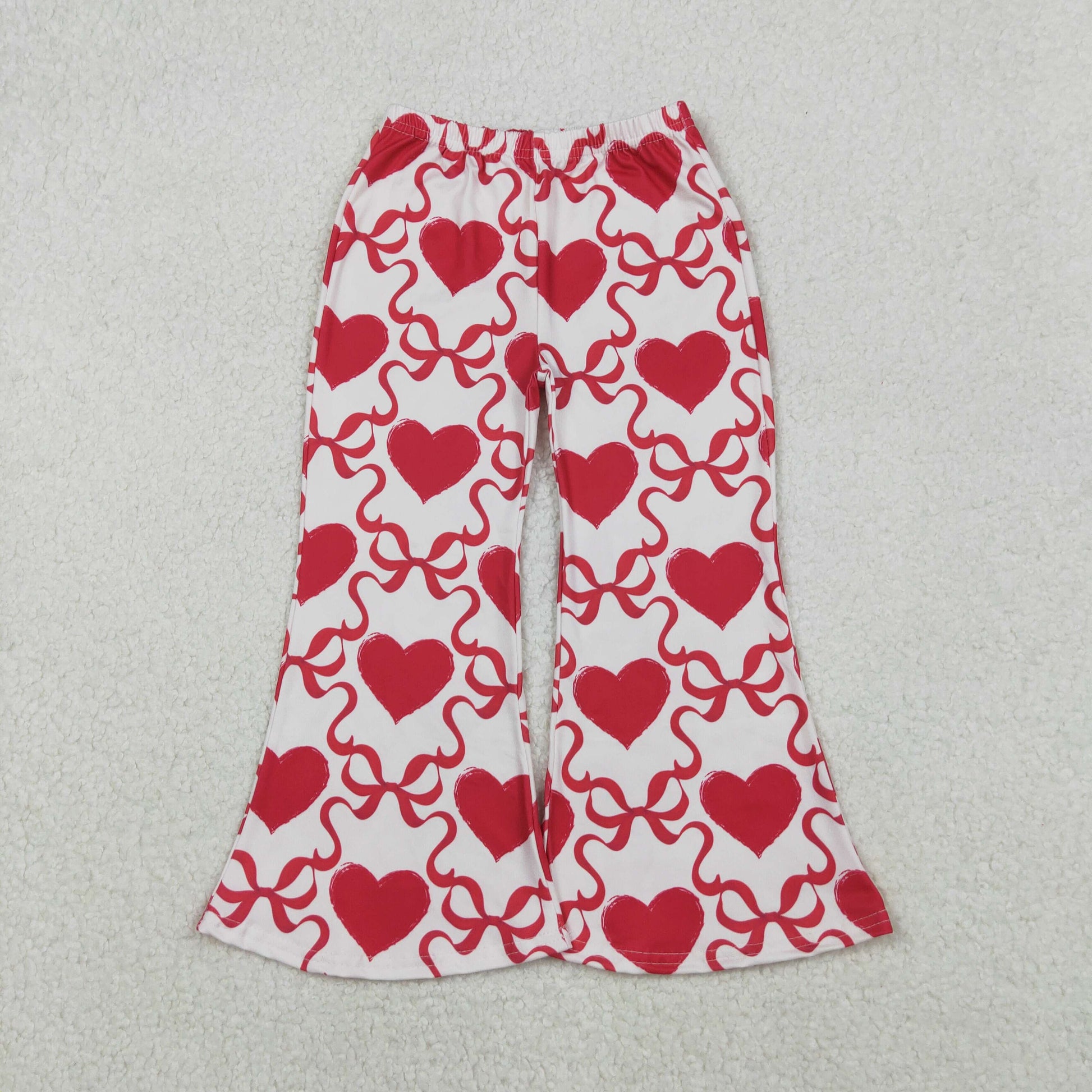 P0895 Baby Girls Red Bows Hearts Checked Valentine Bell Bottom Pants C10.20