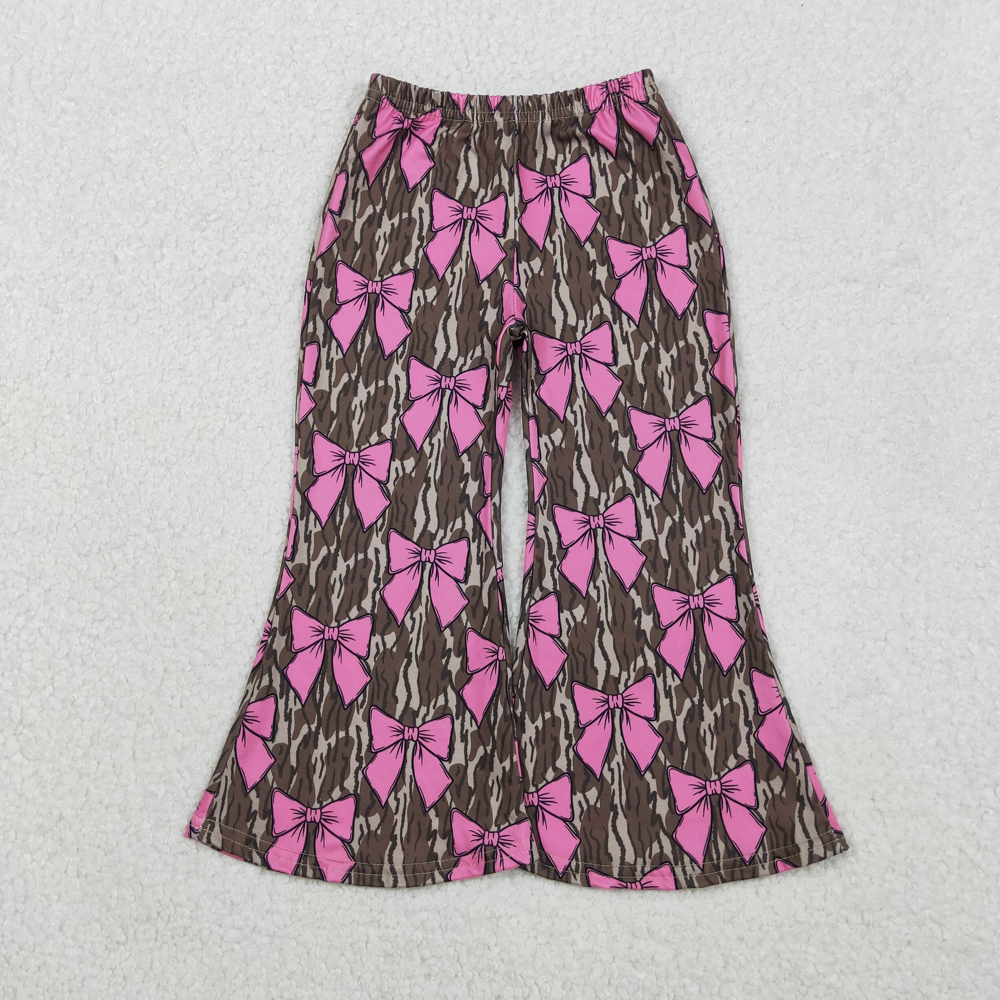 P0896 Baby Girls Olive Camo Pink Bows Plaid Valentine Bell Bottom Pants C11.4