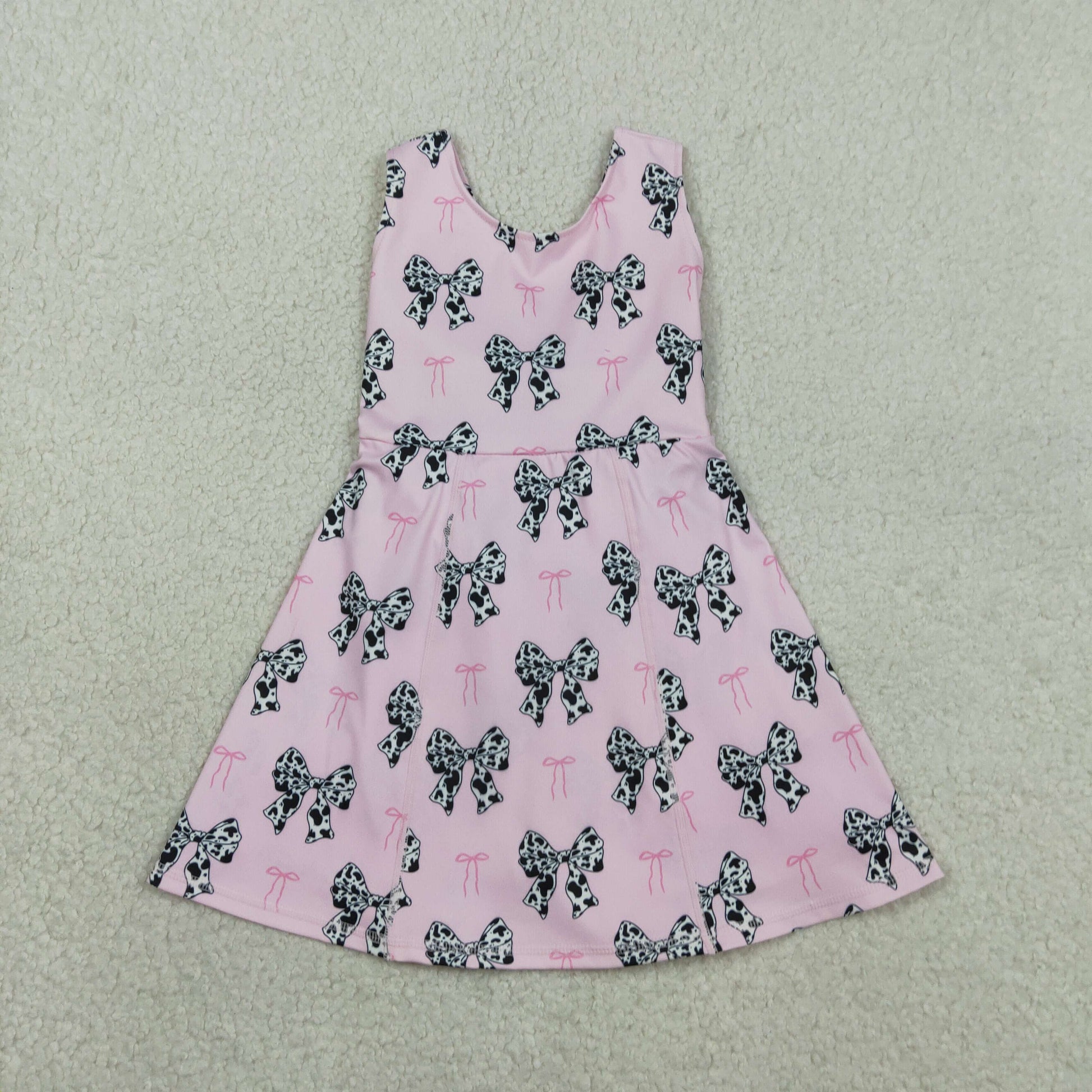 RTS GSD1853 Baby Girls Western Cow Print Bow Sleeveless Skort Knee Length Dresses