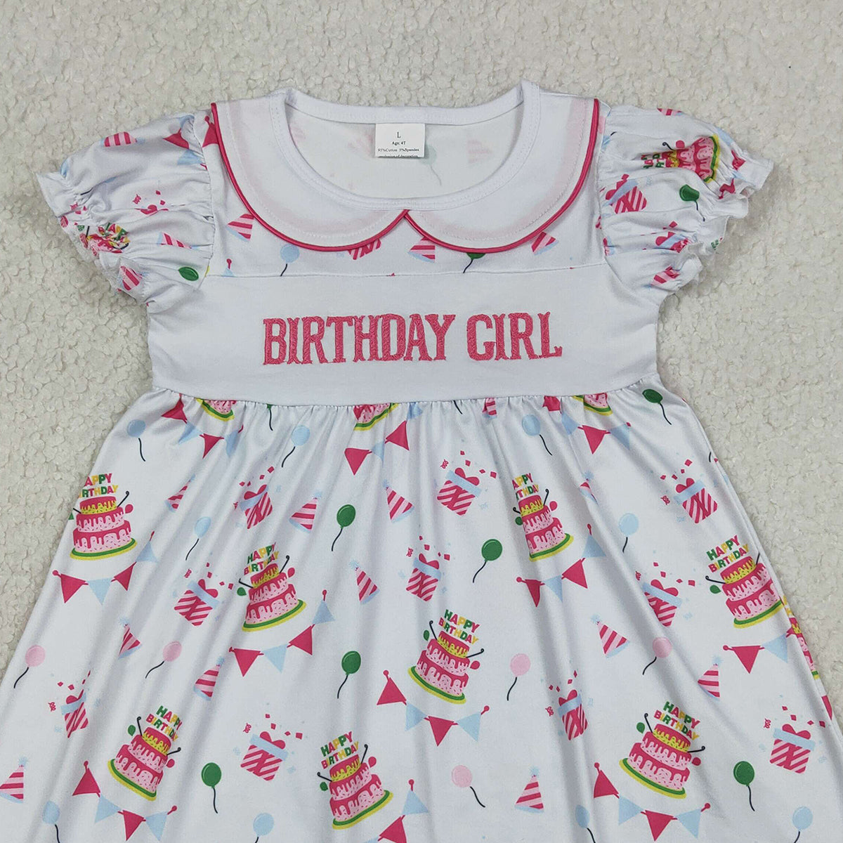 RTS GSD2854 Embroidery Birthday Girl Gifts Balloons Collar Knee Length Dresses