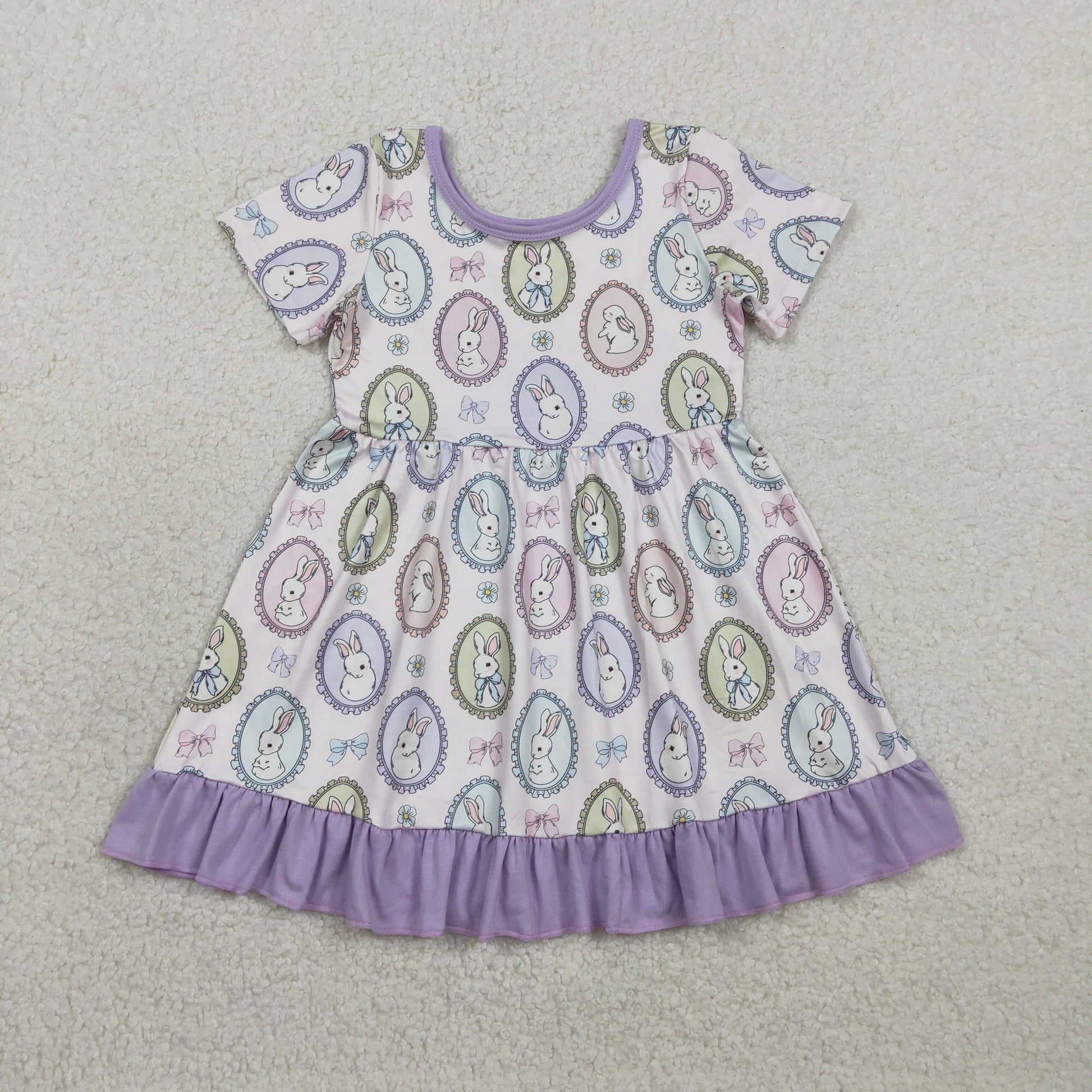 RTS GSD2863 Baby Girls Bows Rabbits Easter Ruffle Knee Length Dresses