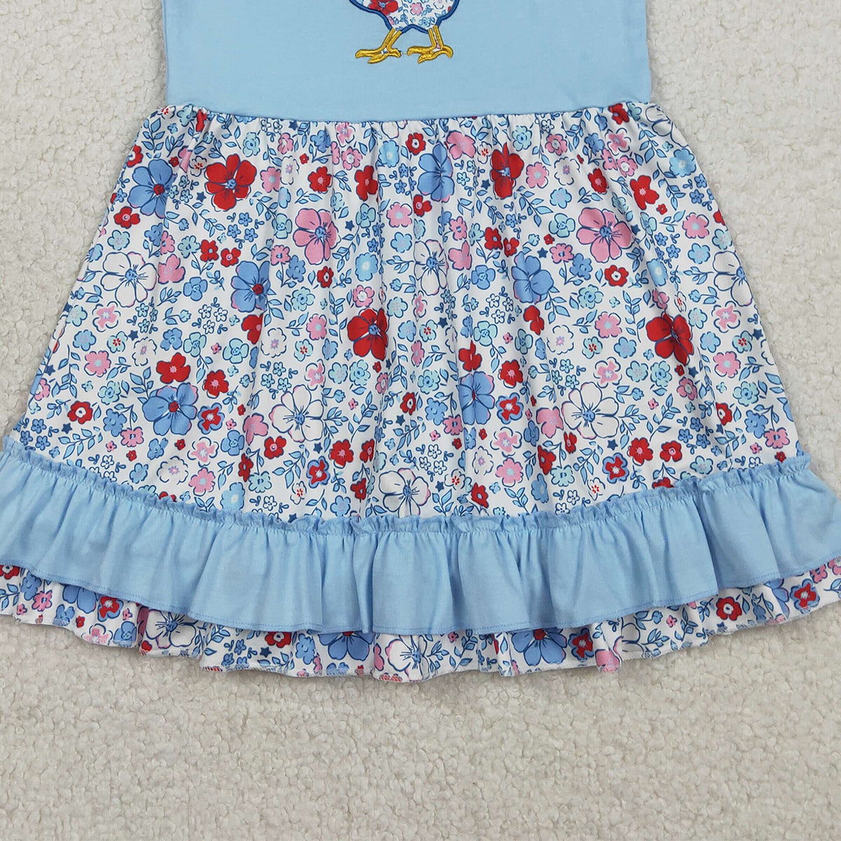 RTS GSD3418 Embroidery Floral Chick Baby Girls Farm Ruffle Knee Length Dresses
