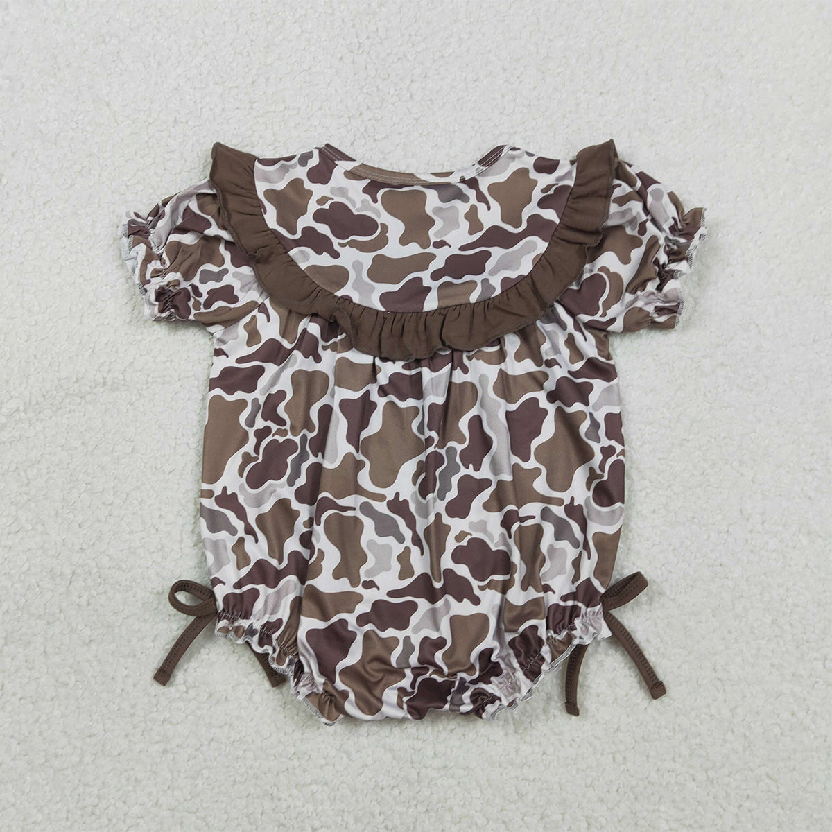 RTS SR3888 Embroidery Mama's Bestie Baby Girls Southern Brown Camo Ruffle Rompers