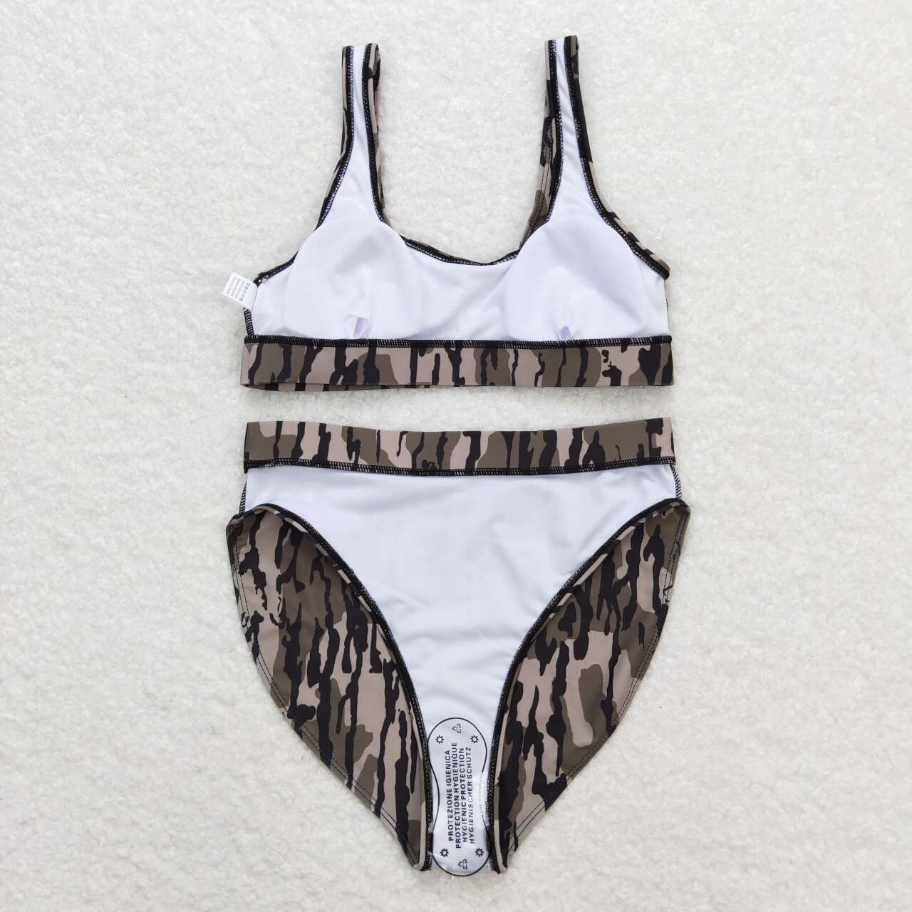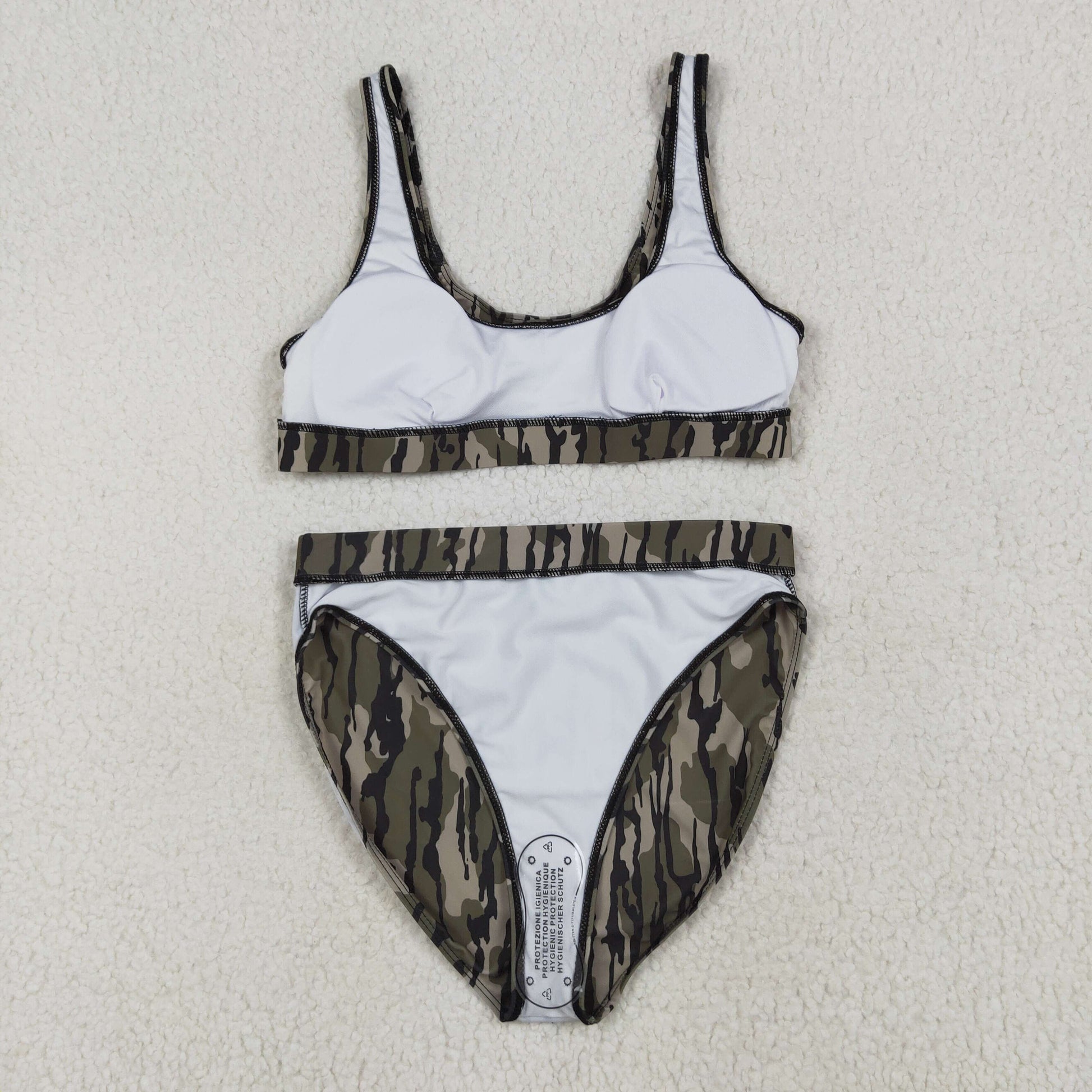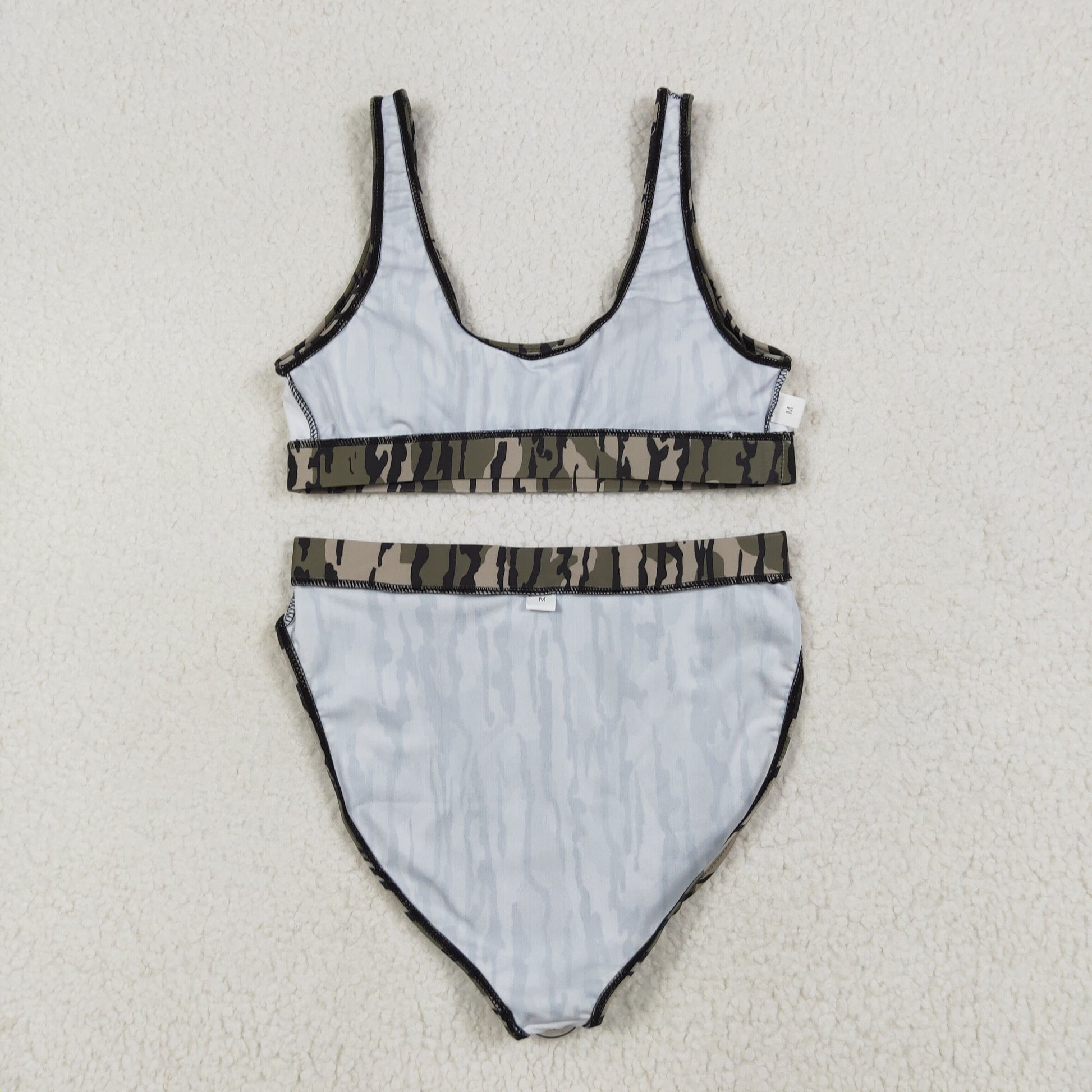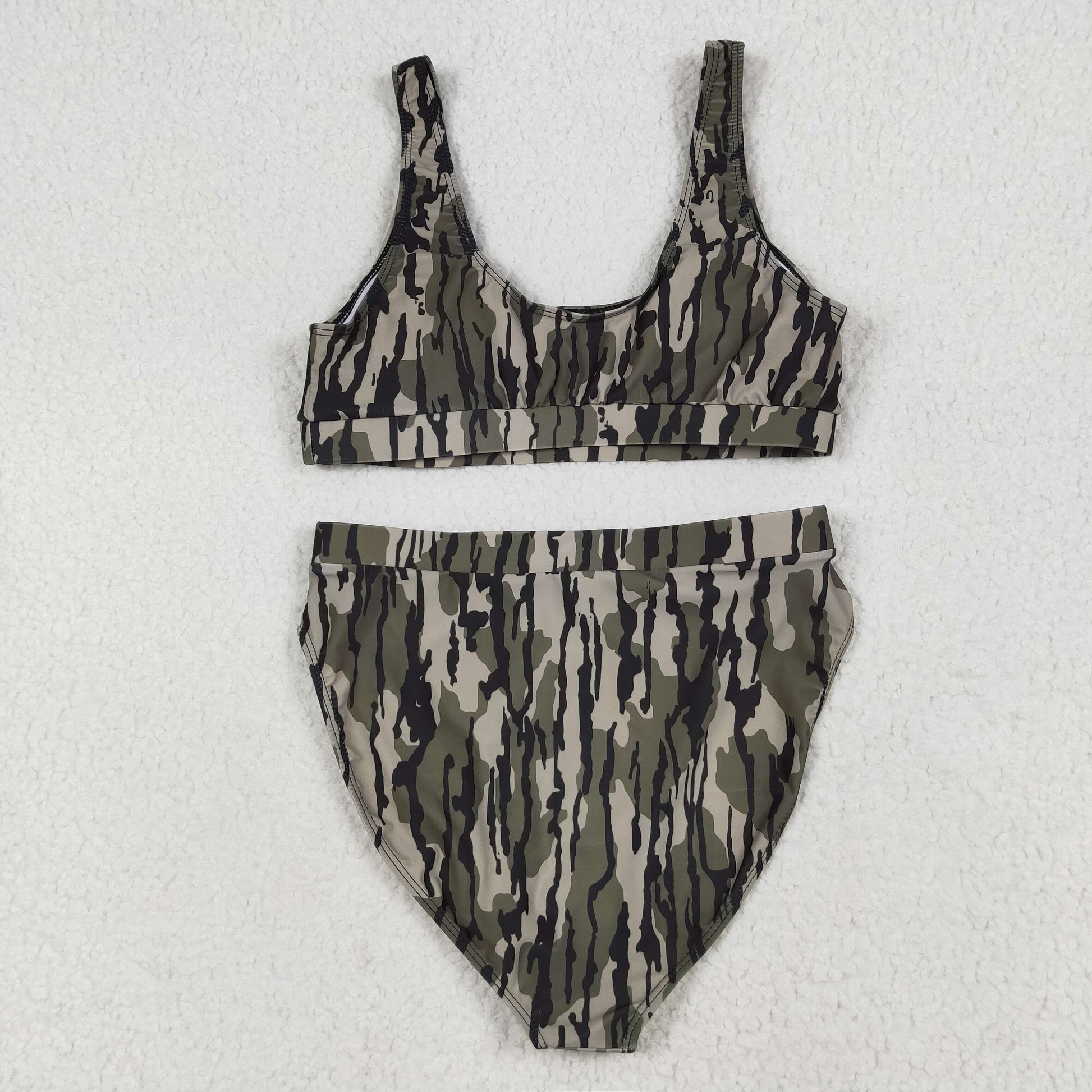 S0562 Adult Women Green Camo Top Bottom Swimsuits Set