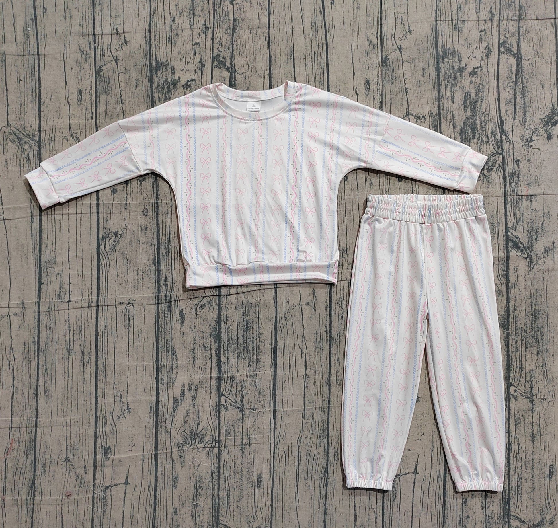 Sample GLP3238 Cute Baby Girls Bows Flowers Stripe Top Jogger Pants Clothes Sets