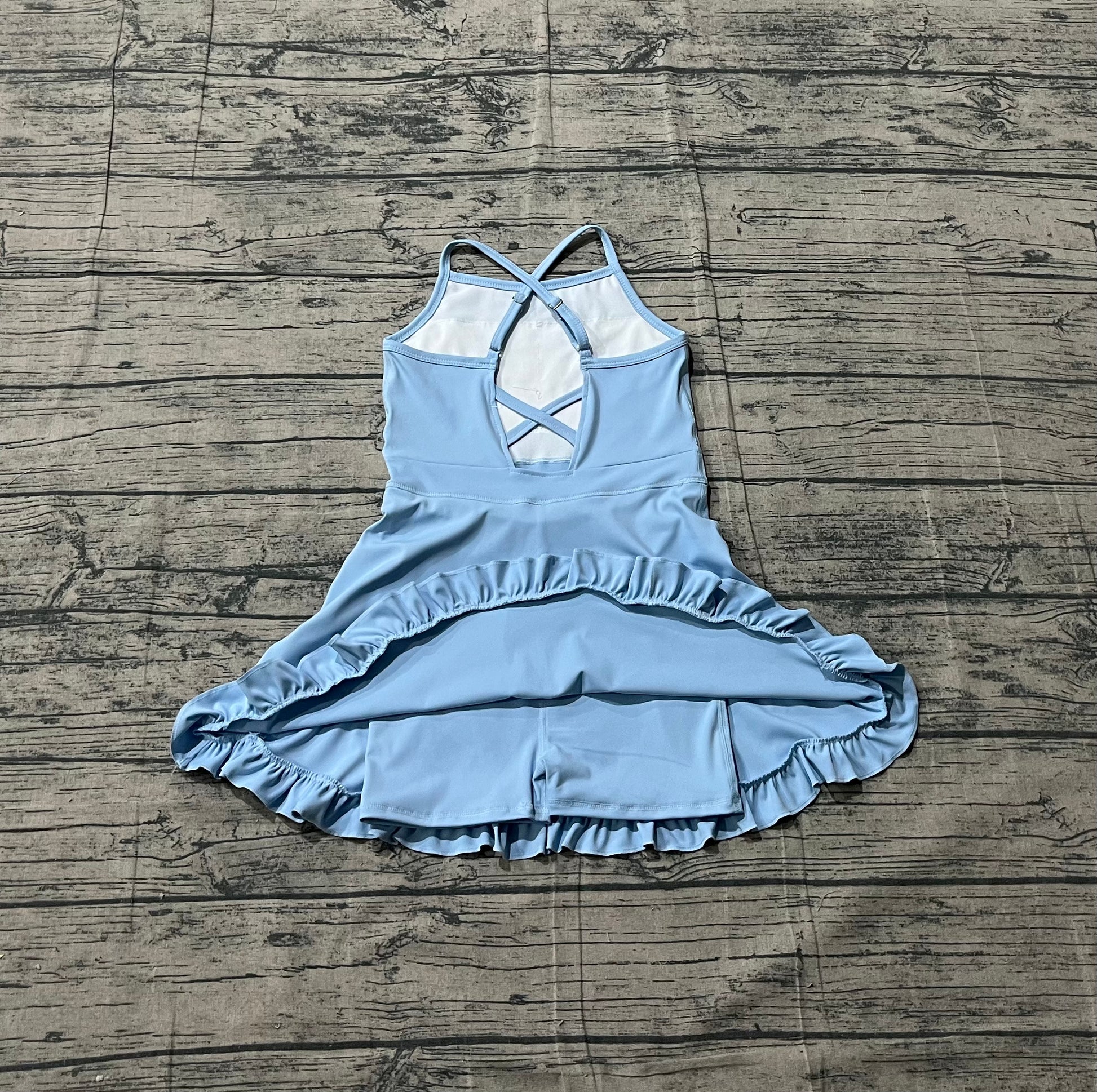 Sample S0713 Cute Yoga fabric Baby Girls Light Blue Strap Yoga Active Shorts Ruffle Knee Length Dresses