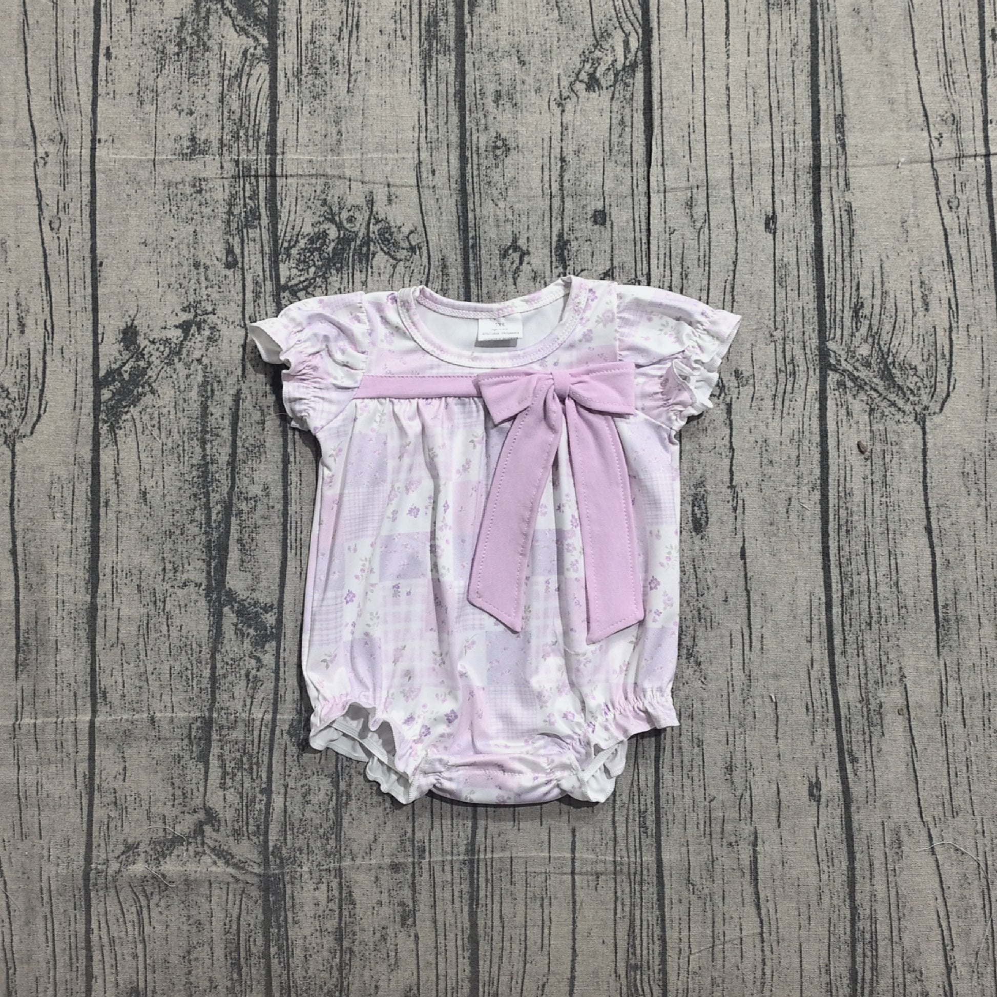 Sample SR3730 Cute Baby Girls Short Sleeve Lavender Flowers Checked Bows Ruffle Rompers