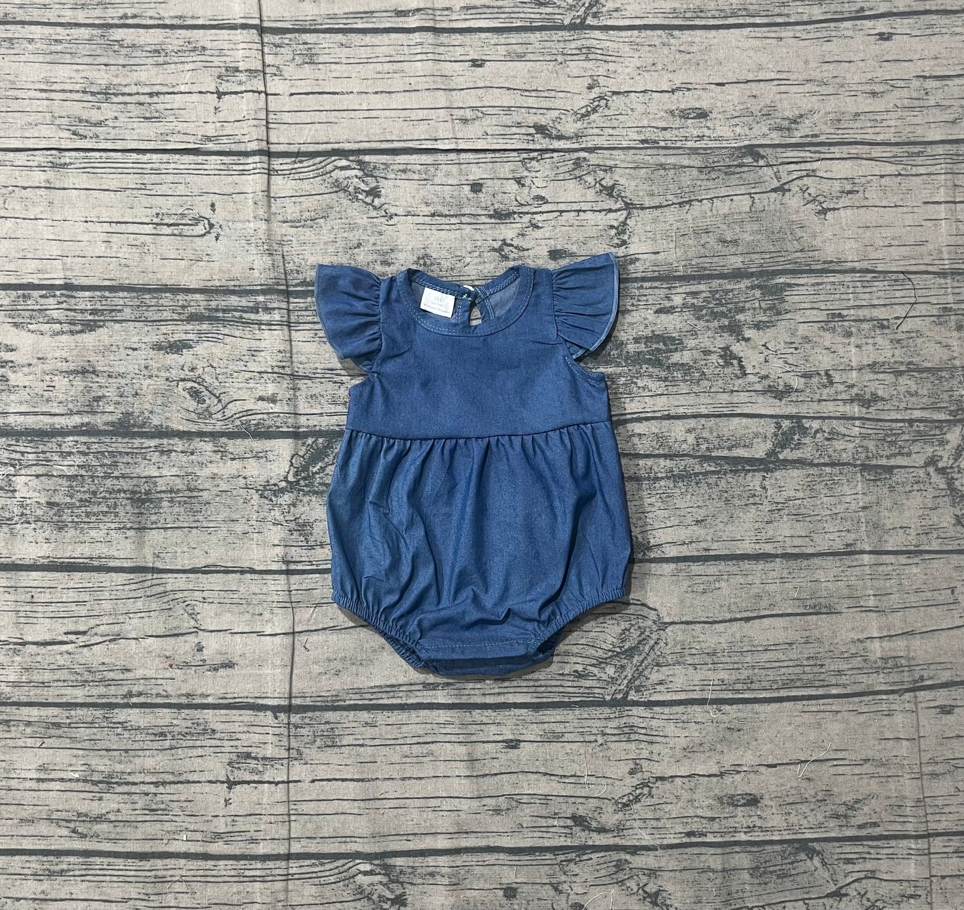 Sample SR3734 Cute Baby Girls Hot Blue Flutter Sleeve Ruffle Rompers