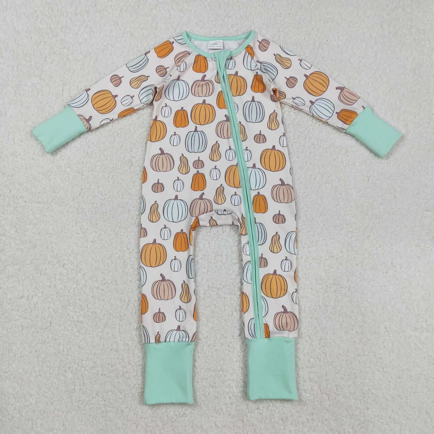 Sibling Baby Boys Colorful Pumpkins Fall Zipper Footie Rompers Pajamas Sets C9.4