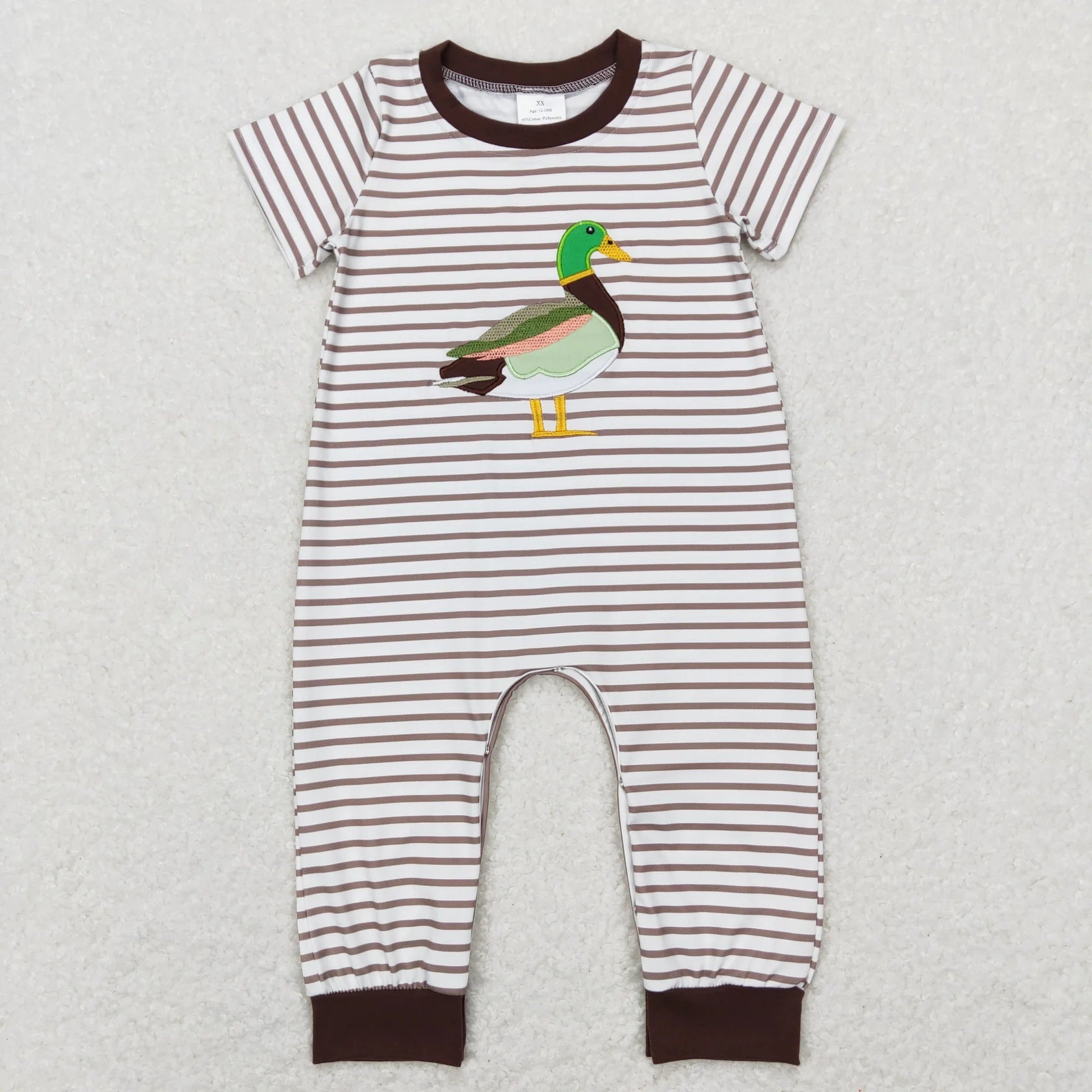 Sibling Baby Boys Girls Embroidery Ducks Stripe Top Hunting Clothes Sets Pant Rompers C11.1