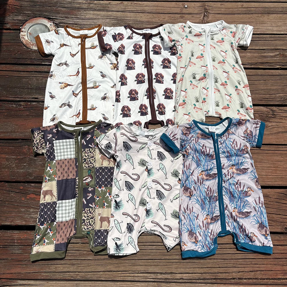 Sibling Baby Boys Hunting Duck Short Sleeve Zip Rompers C8.23