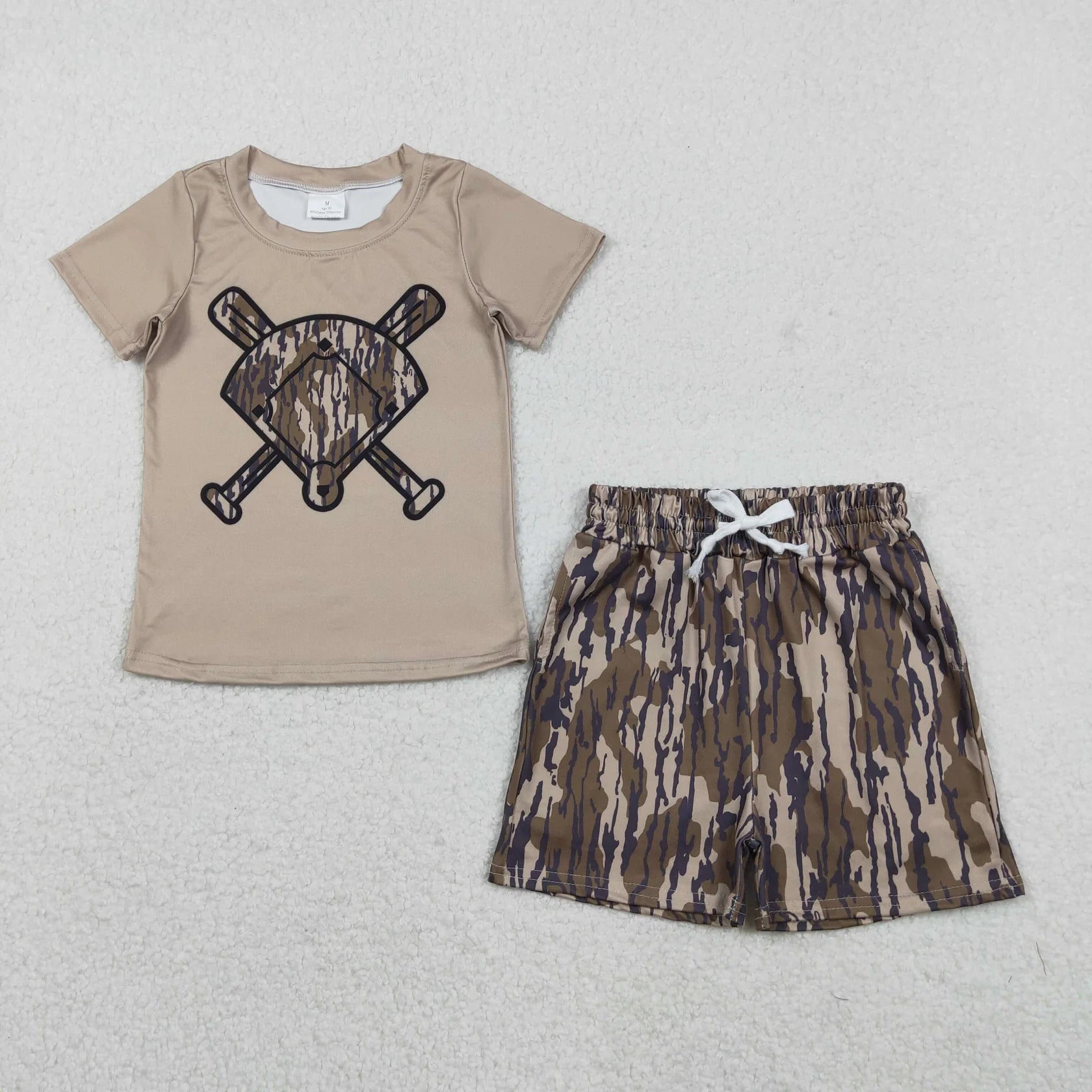 Sibling Baby Boys Short Sleeve Camo Baseballs Top Pockets Shorts Team Clothes Sets C11.25