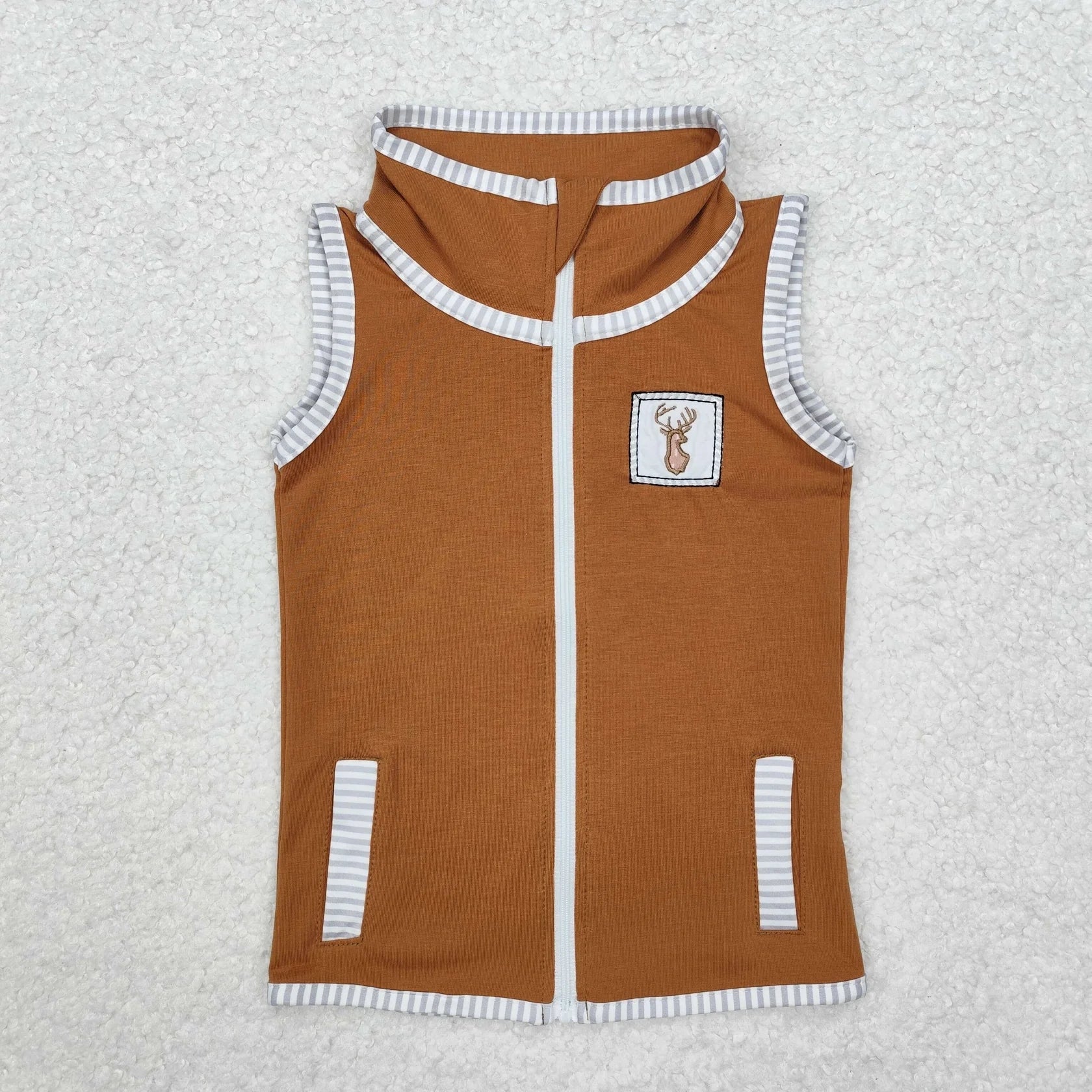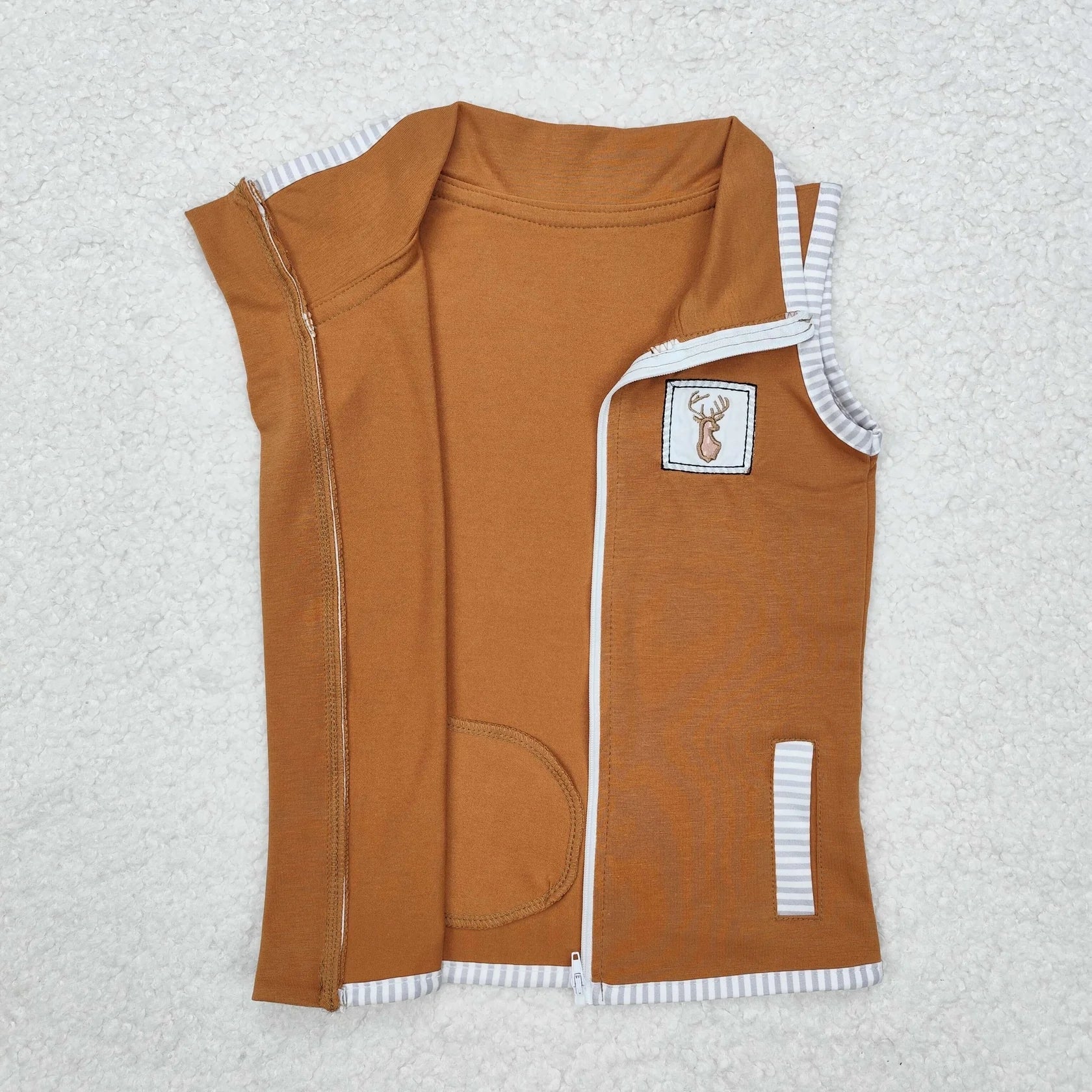 Sibling Baby Boys Sleeveless Embroidery Deer Dog Duck Pocket Zipper Jackets Top 8.7