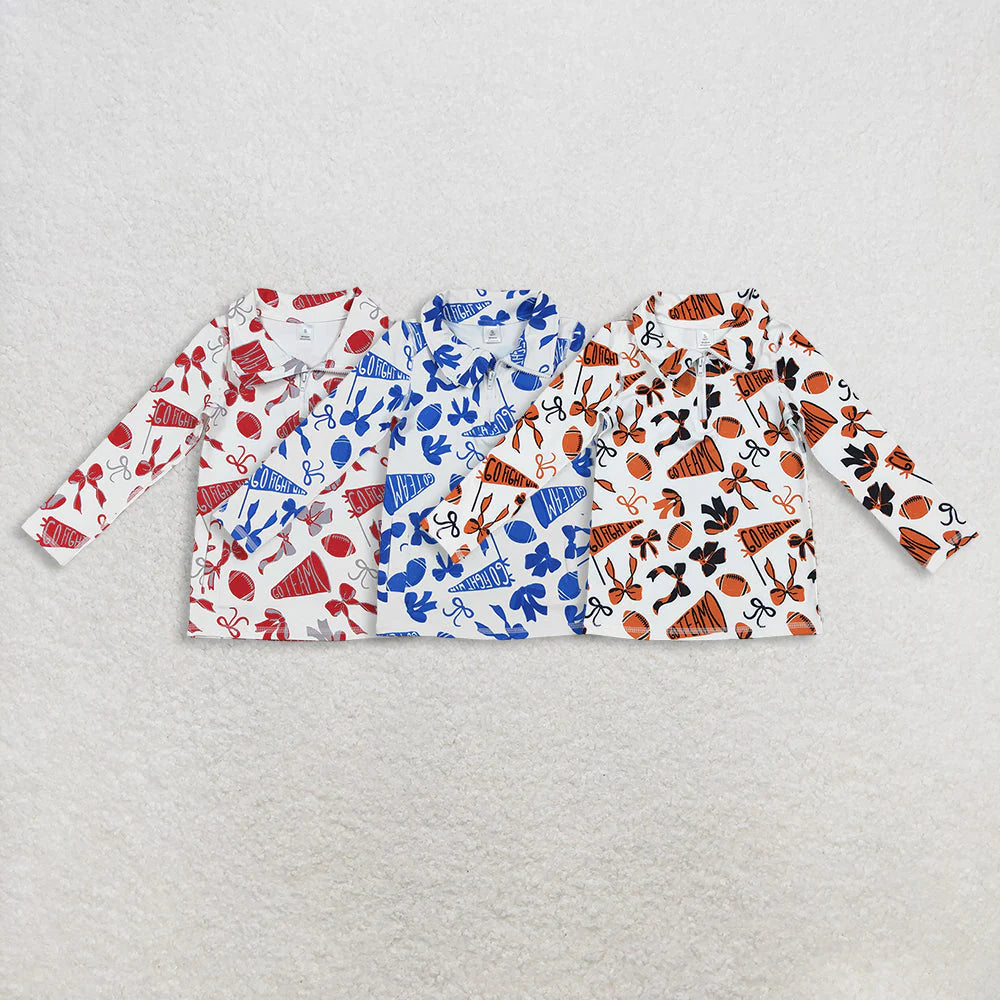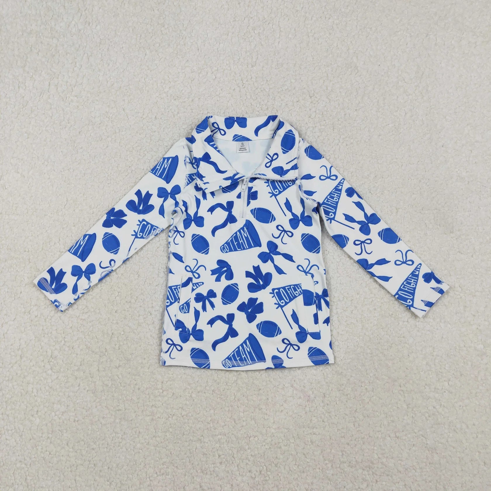 Sibling Baby Girls Bows Footballs Go Team Yoga Active Zipper Pullovers Top C11.1