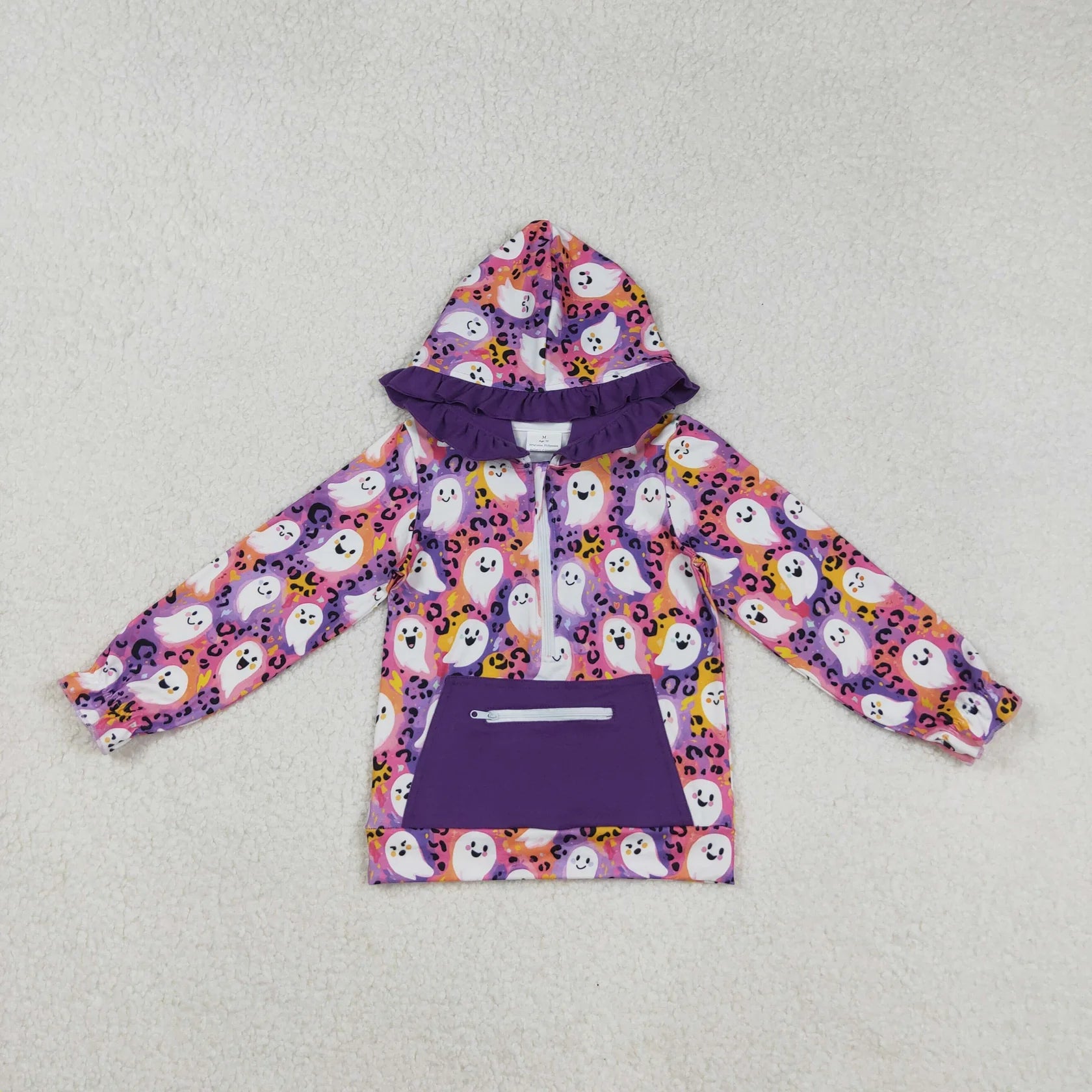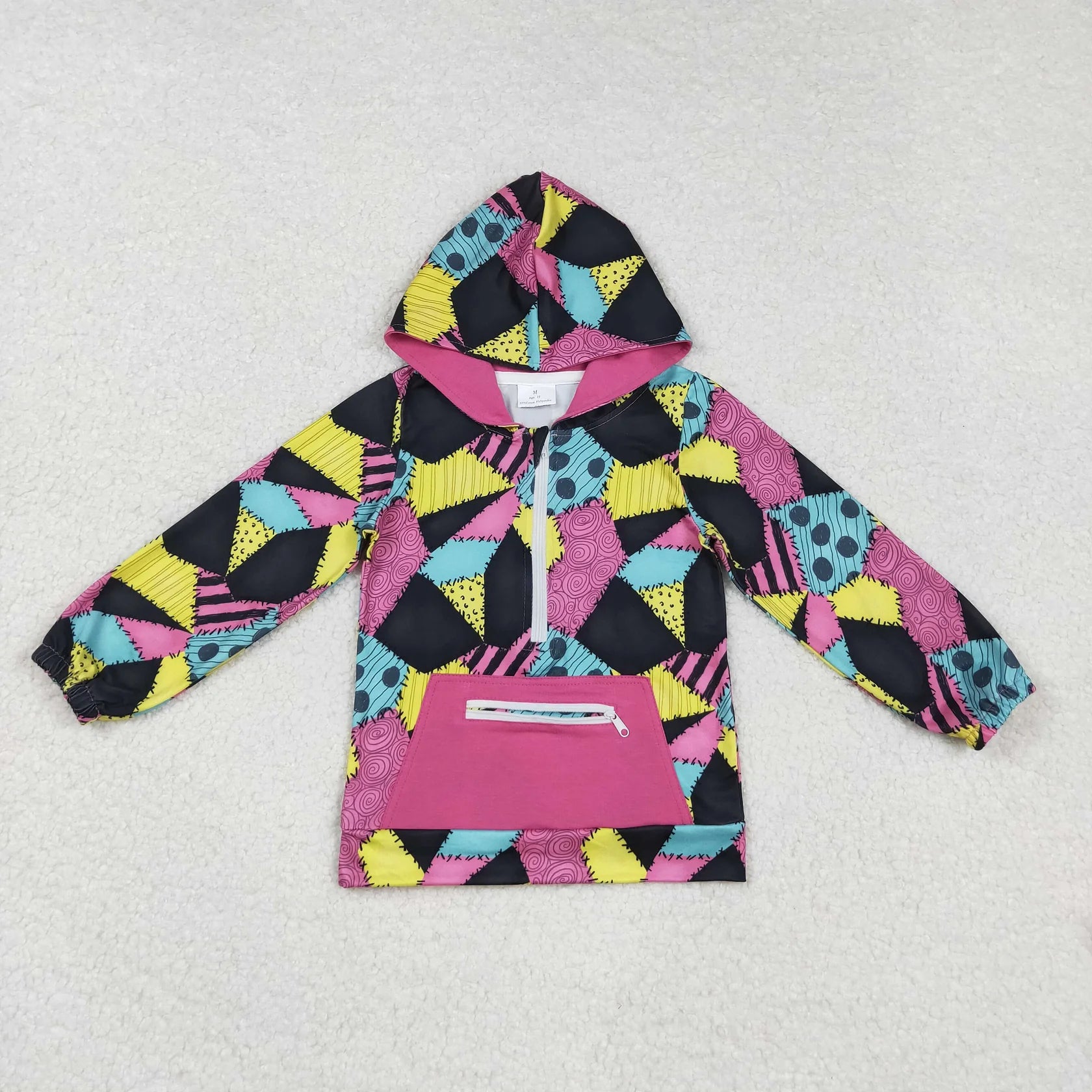 Sibling Baby Girls Colorful Patchwork Ghosts Pocket Zipper Halloween Hoodies Top C10.24
