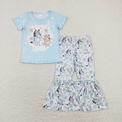 Sibling Baby Girls Dogs Shirts Top Bell Pants Outfits