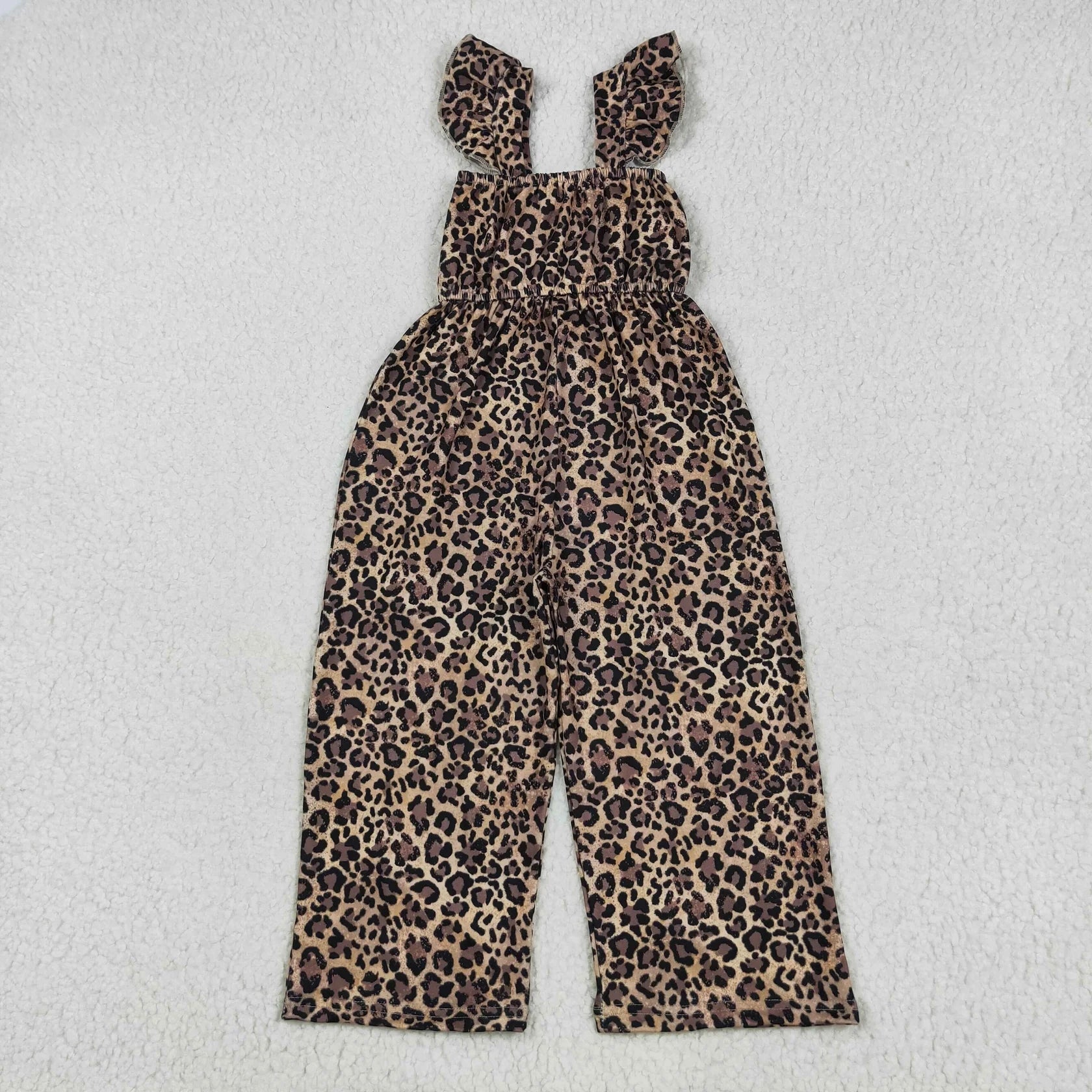 Sibling Baby Girls Flutter Sleeves Peach Daisy Flowers Leopard Bell Jumpsuits 5.24