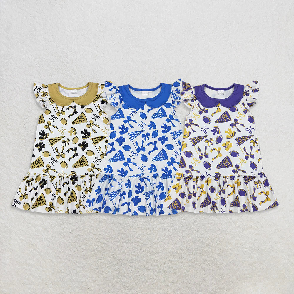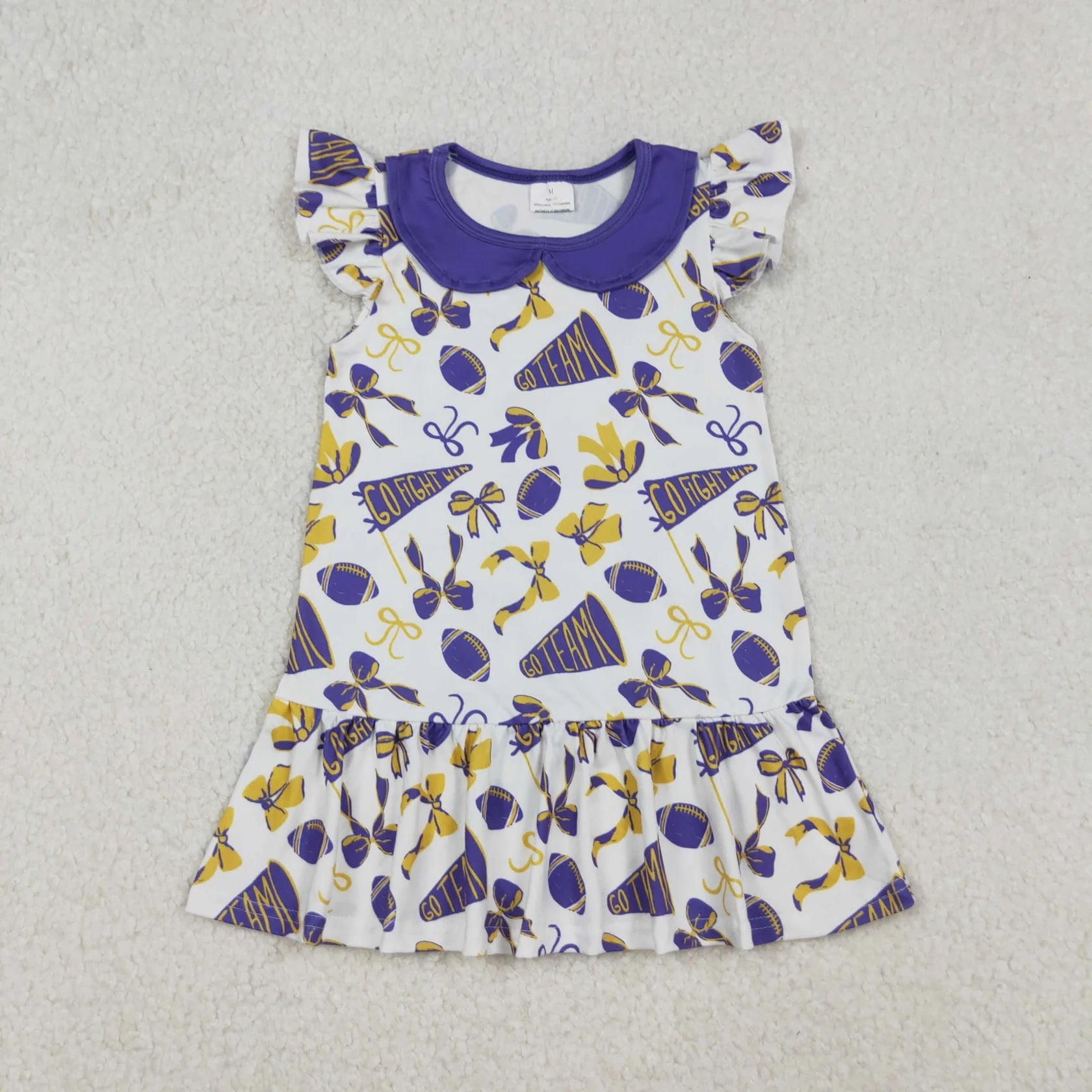 Sibling Baby Girls Go Team Bows Footballs Knee Length Dresses C10.10