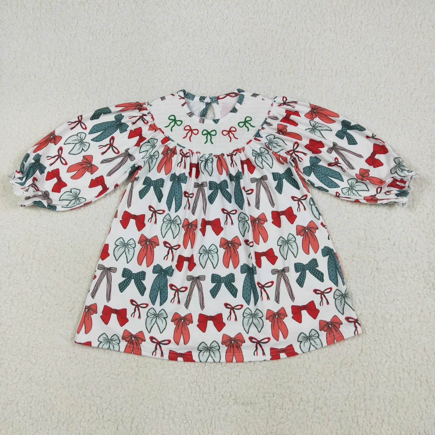 Sibling Baby Girls Green Red Bows Christmas Knee Length Dresses C9.2