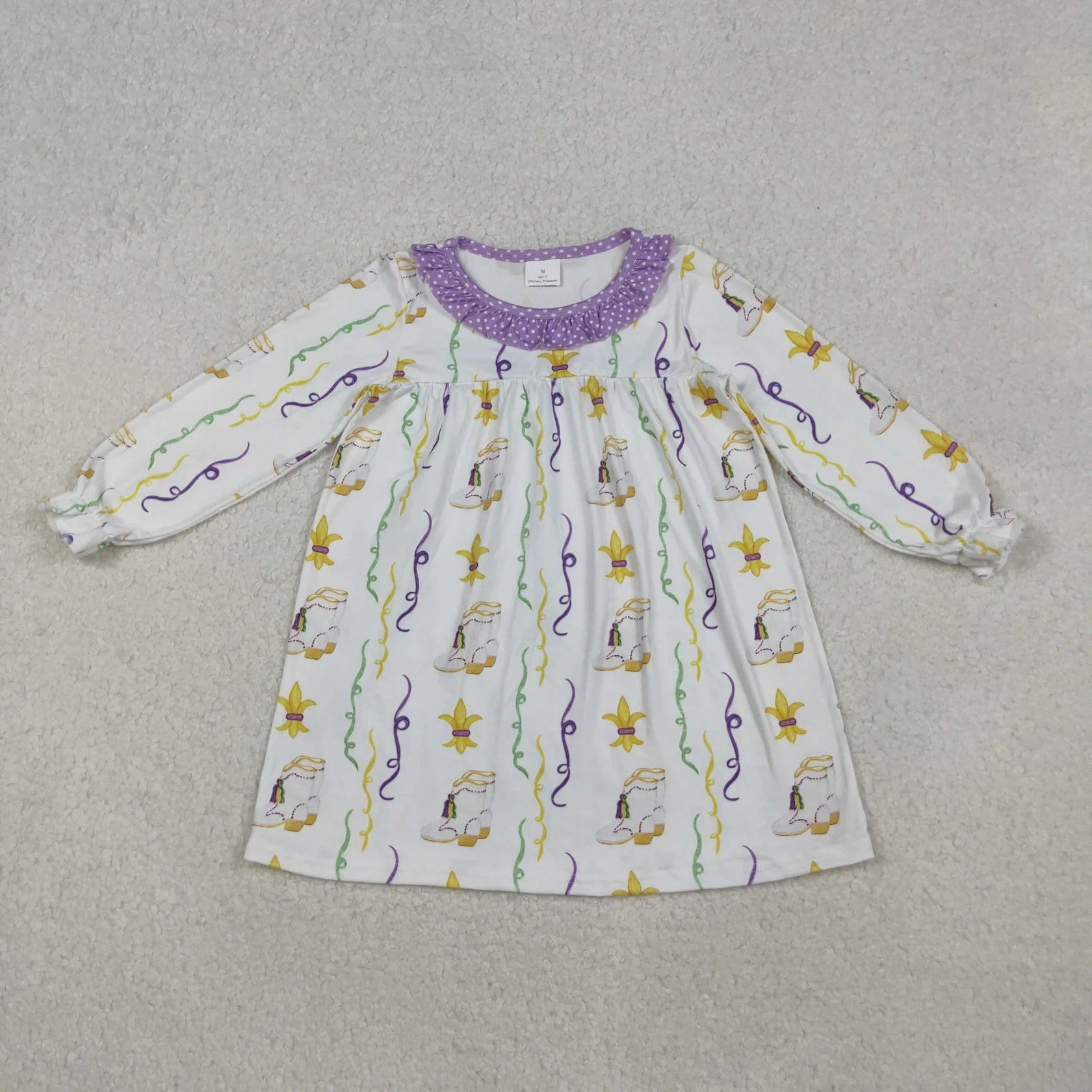 Sibling Baby Girls Mardigras Anchors Stripe Ruffle Collar Knee Length Dresses Rompers C10.27