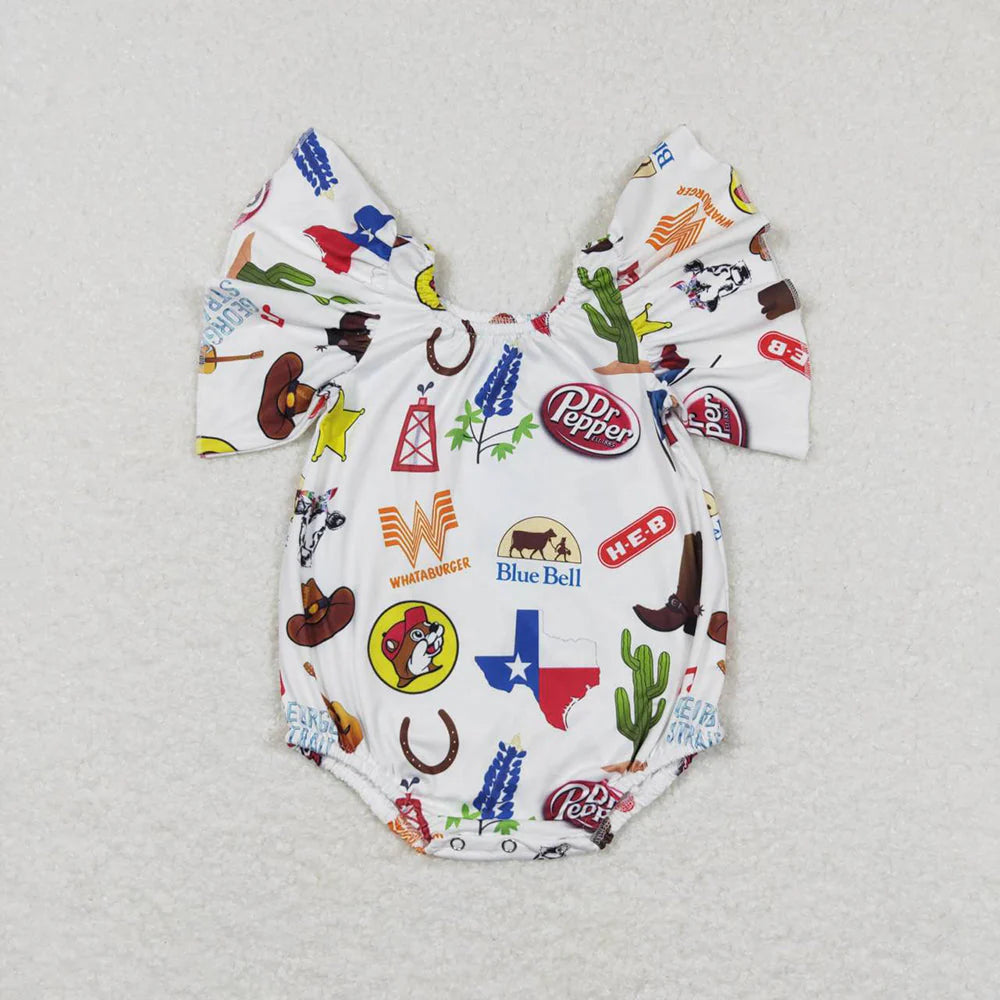 Sibling Baby Girls Western Flutter Sleeve Rompers C8.26