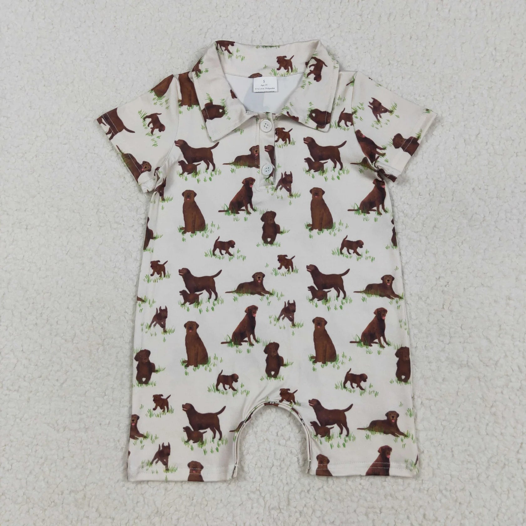 Sibling Baby Short Sleeve Button Boys Dogs Hunting Polo Shirt Top Short Romper C11.29