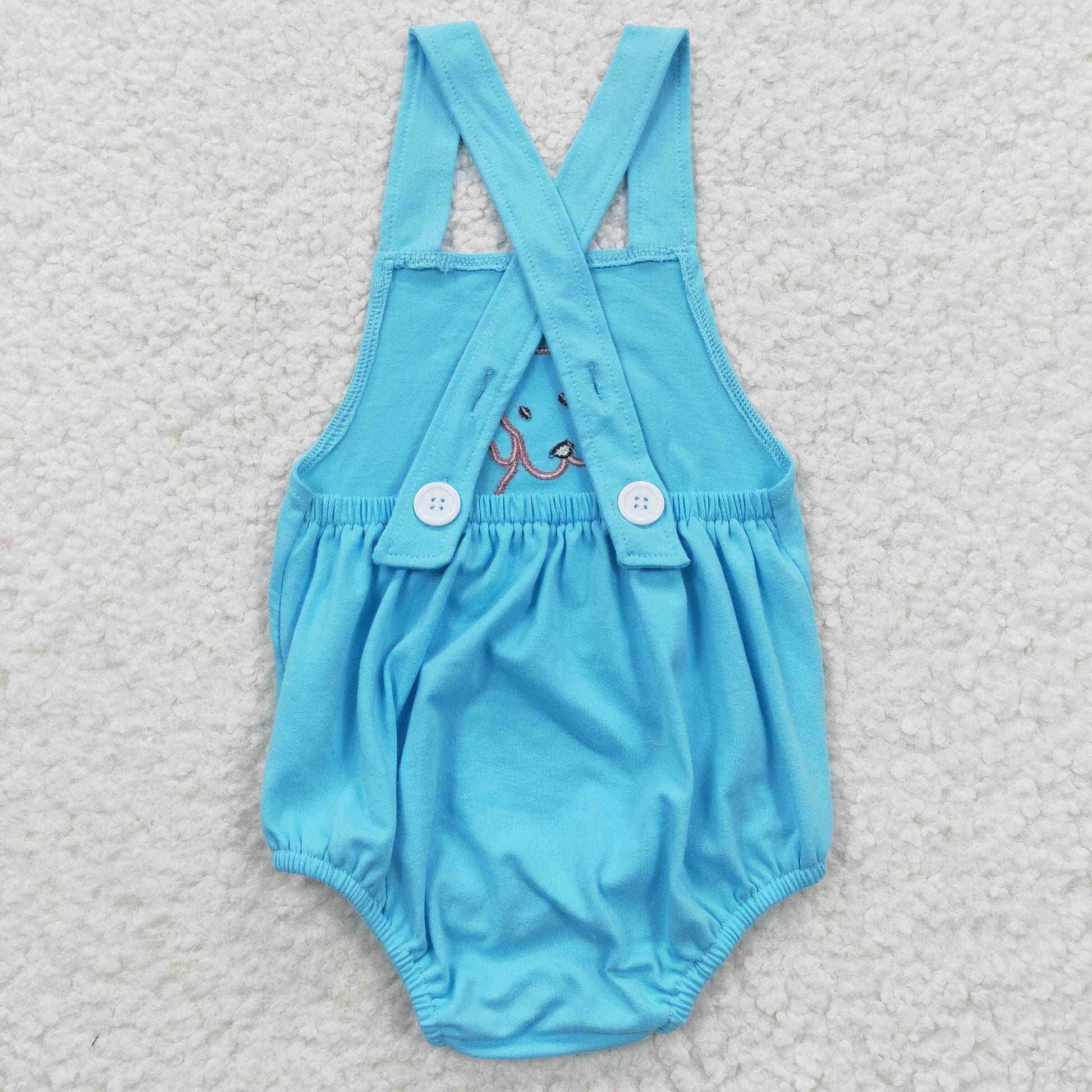 SR0311 Boys Embroidered Puppy Blue Vest Jumpsuit