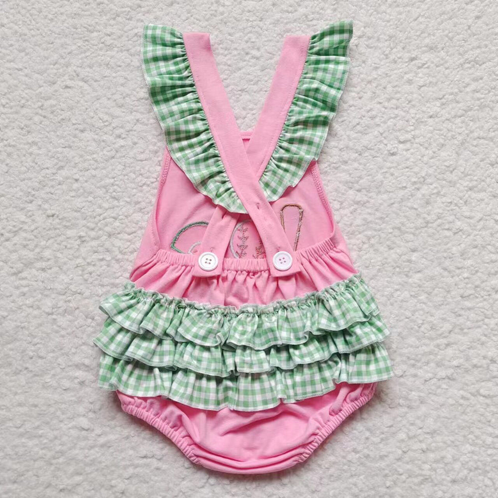 SR0271 Girls Embroidery Play Baseball Pink Small Flying Sleeve onesie