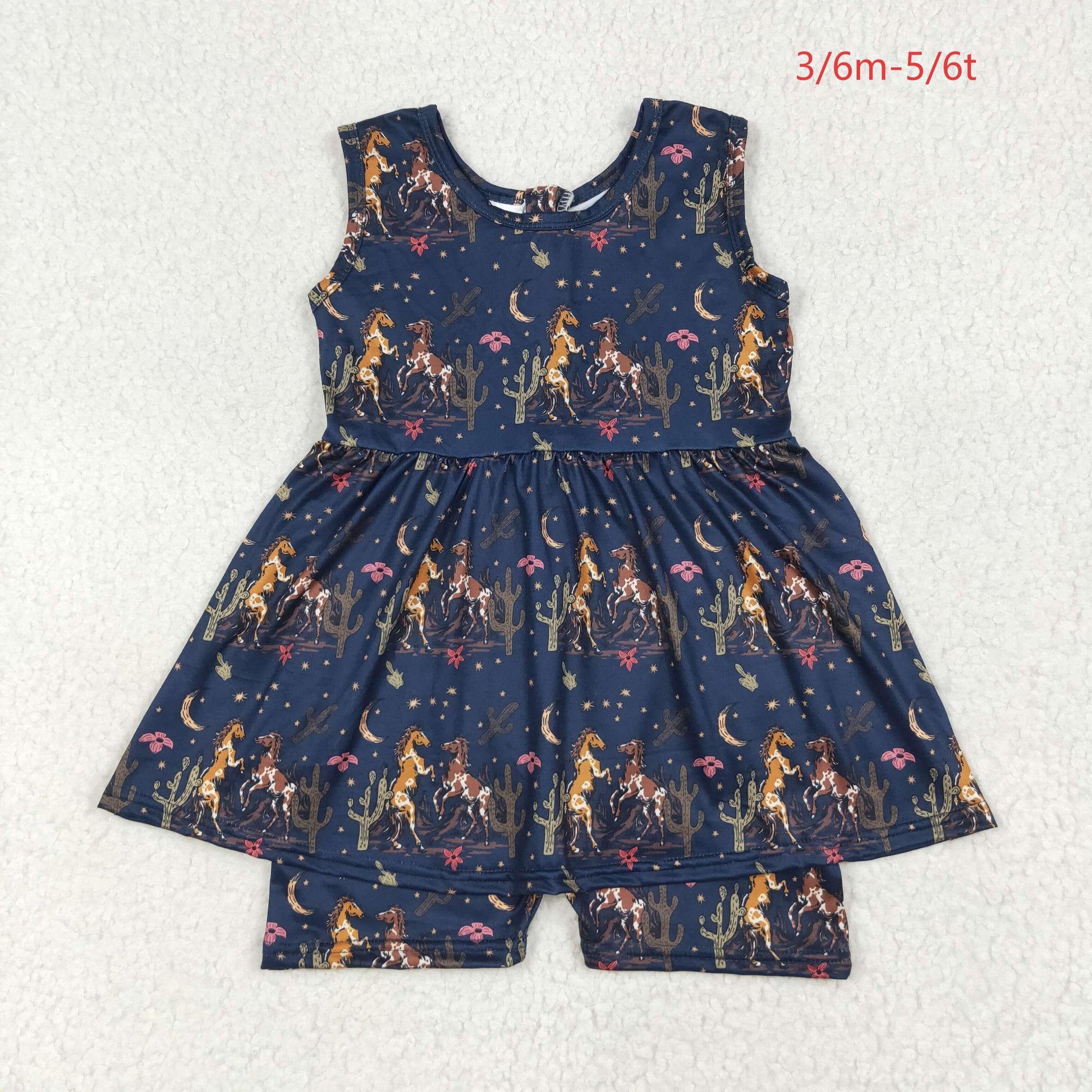 SR3071 Baby Girls Navy Sleeveless Horses Cactus Skort Jumpsuit 7.5
