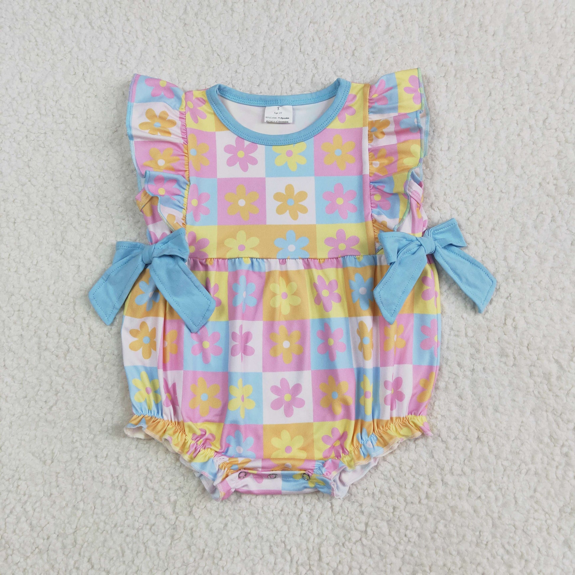 SR3090 Baby Girls Flutter Sleeves Bows Flowers Plaid Ruffle Romper 6.6