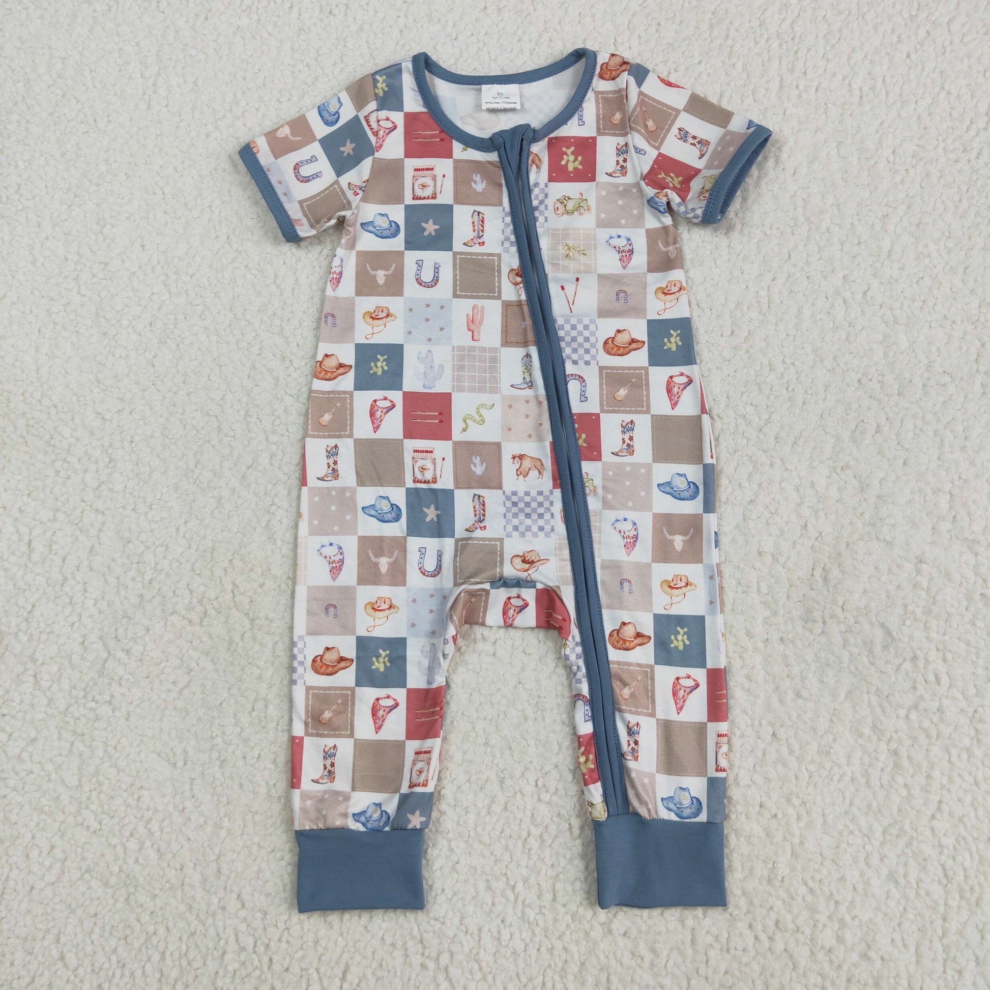 SR3098 Baby Infant Boys Short Sleeves Boots Cactus Zipper Romper 5.22