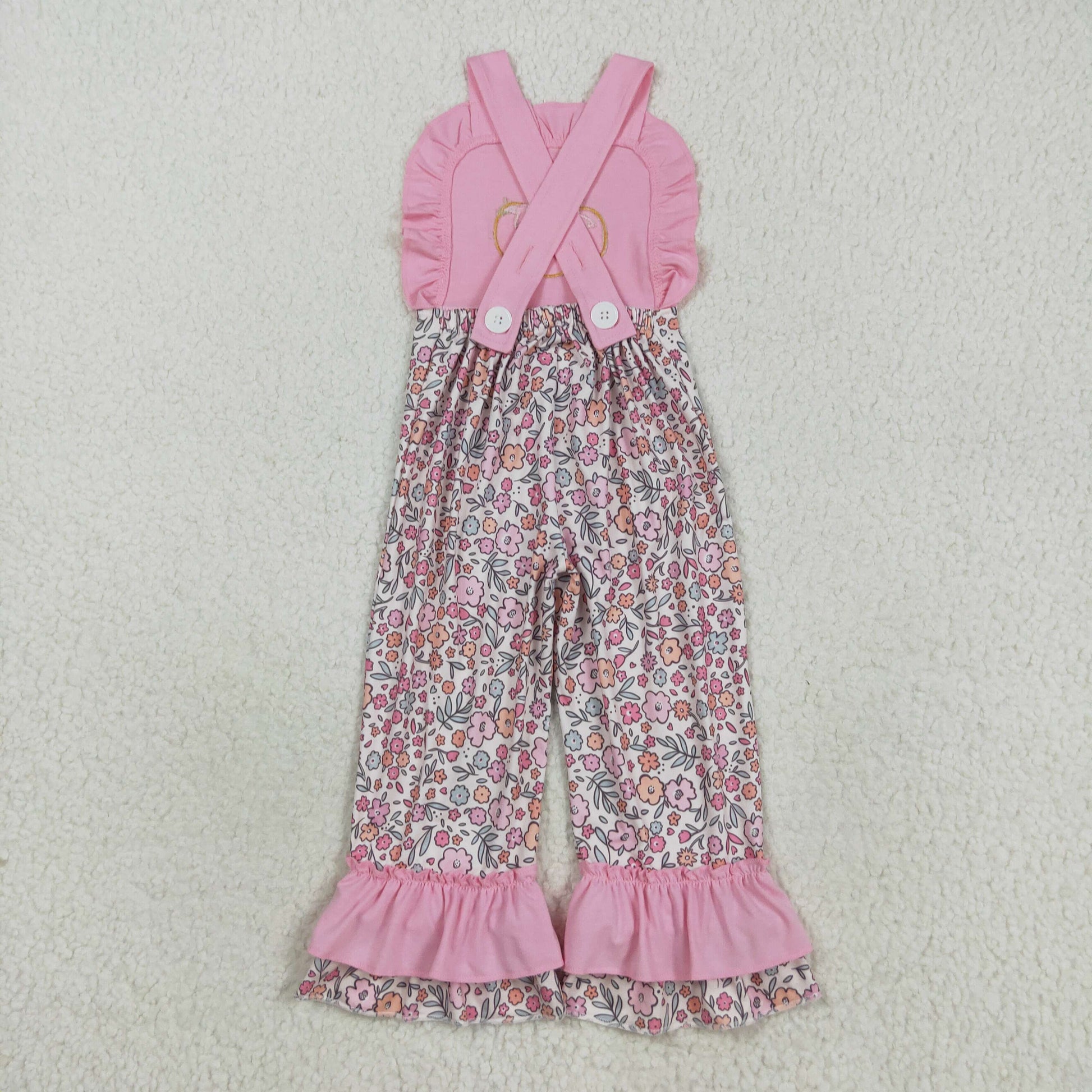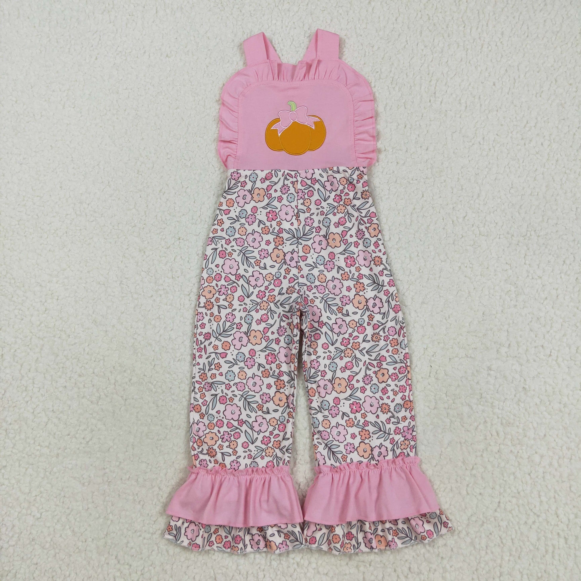 SR3176 Embroidery Baby Girls Pink Strap Bow Pumpkins Floral Ruffle Pant Jumpsuit C8.16