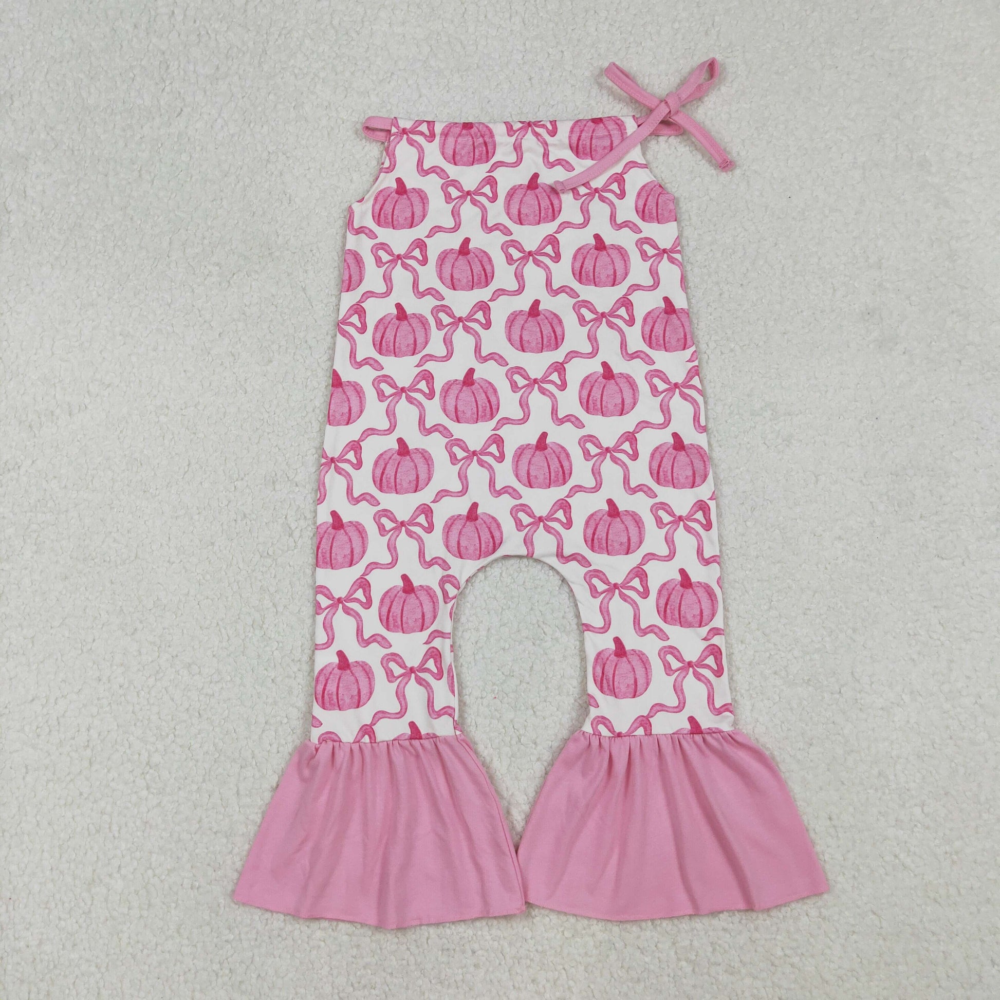 SR3200 Baby Girls Pink Strap Bows Pumpkins Plaid Bell Bottom Fall Jumpsuit C9.17