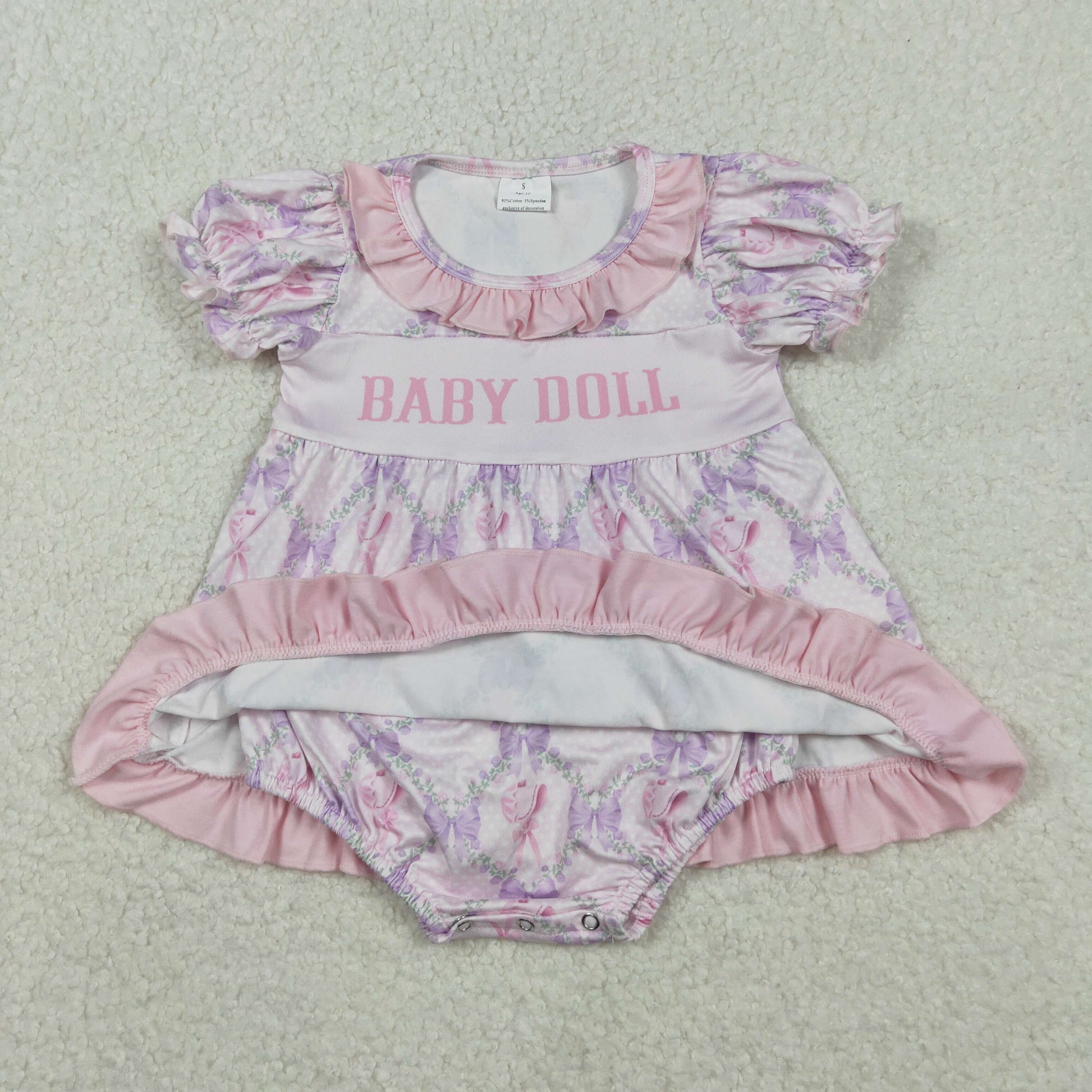 SR3291 Baby Girls Baby Doll Bows Flowers Checked Tunic Ruffle Bummier Romper C11.18
