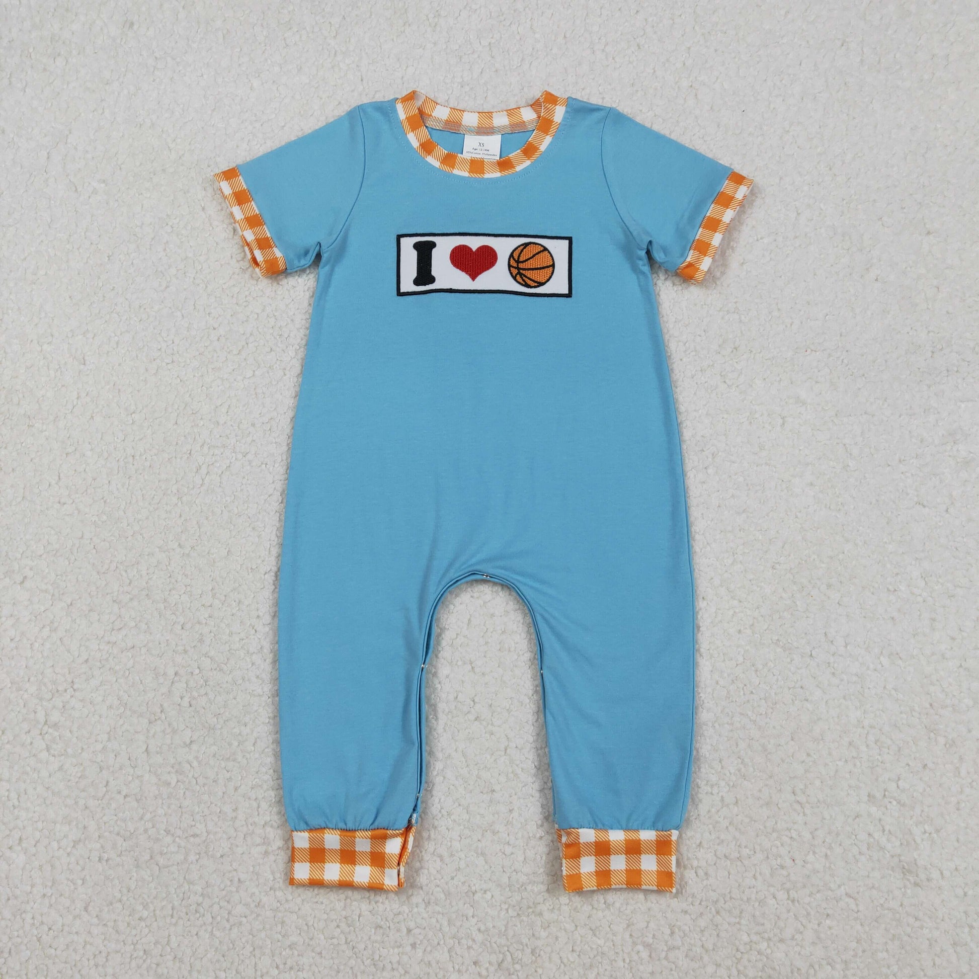 SR3366 Embroidery I Love Basketballs Baby Boys Team Footie Romper C12.13